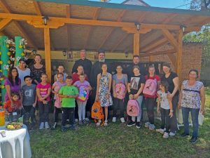 Дарове у виду ранчева и школског прибора за чланове „Заагрљаја“ обезбедило је братство ПНХЗ „Воздвиженије Часног Крста“ и Владика Исихије их је овом приликом уручио малишанима.