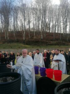 „Данас се освећују воде у читавом православљу, у целој васељени и вода, коју овде осветимо, је на тајанствени начин повезана са свим водама у целом свету. Данас су све воде освећене и данас имамо благодат Светог Духа. Чудесна освећена водица је током целе године са нама у нашим домовима и чувамо је као највећу светињу“, рекао је Преосвећени Епископ ваљевски Г. Исихије, благосиљајући верни народ у Храму Васкрсења Христовог приликом освећења Богојављенске водице.