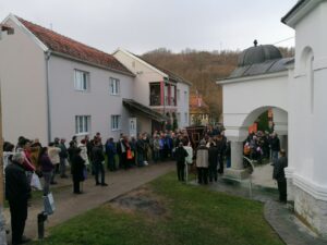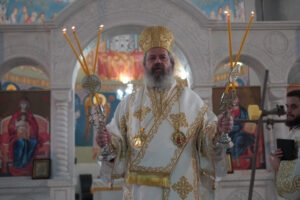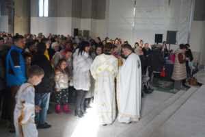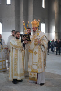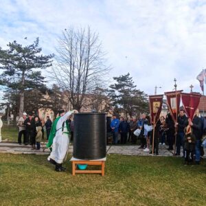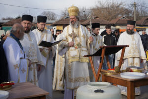 Након Свете Архијерејеске Литургије, на платоу испред саборног храма Владика Исихије је обавио освећење Богојављенске водице, благословивши верне да им на здравље и свако добро буде.