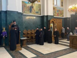 - Нас презвитере Господ ће у дан Страшног суда упитати шта смо учинили за ближње своје и њихово спасење. Јесмо ли принели дарове са њиве Господње? Јесмо ли умножили поверене нам таланте и какве слуге смо били? Да ли смо позивали на покајање човека данашњице повереног нам стада… Нећемо бити питани колико смо знање стекли, нити за бриге овог света, већ да ли смо се мирили, праштали и устајали након пада, позивали на Свету Литургију, исповест, причешће и дела љубави и милосрђа- указао је отац Иван Јовановић на призвање, дар и одговорност свештеничке службе данас, позвавши браћу свештенике да се сви заједно постиде греха по узору на све покајнике кроз историју, јер и данас Господ невидљиво стоји пред њима као у дан Страшног суда.