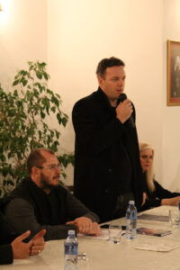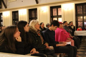 У сали испуњеној до последњег места, испред Црквене општине Обреновац, све је поздравио О. Лека, а затим је реч препустио модератору Страхињи Колашинцу.