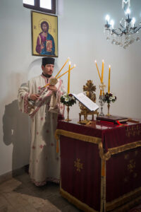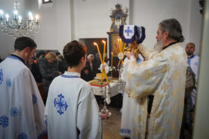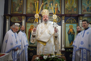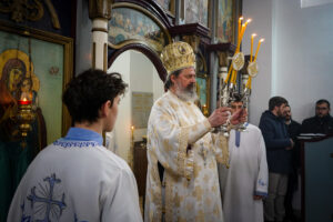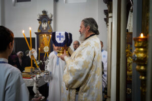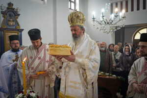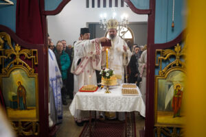 Након Свете Литургије, Владика Исихије је благословио и преломио славски колач са свештенством и верним народом и честитао славу свима, који Васкрсење Лазарево прослављају у својим домовима.