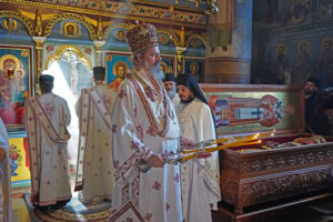 У наставку проповеди, он је објаснио да је Царство Христово не од овог века, већ се прославља на Светој Евхаристији, на којој се доживљава заједница са Богом и једних са другима. То је, истакао је Владика Исихије много дубља заједница, него што је заједница двоје људи који се воле, сродника и било којих међуљудских односа. Евхаристијска заједница је богомблагословена и доводи човека у рајско стање и то се може доживети само у Цркви преко Свете тајне причешћа.