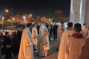 Васкршњу посланицу Патријарха српског Г. Порфирија и свих архијереја Српске Православне Цркве је прочитао протонамесник Драган Јаковљевић. Уз радосни поздрав Празника над празницима „Христос васкрсе“, посланица српских аријереја доноси појашњење величанствености данашњег дана, у коме је крсним страдањем Сина Божјег побеђена смрт, затим значаја вере у Христа, као нечега што даје смисао нашим животима више од било чега што се може створити. Као чувар Косовског завета, СПЦ и овога пута подсећа верни народ да умножи молитве за очување Косова и Метохије, уз разумевање и заједнички живот са албанским народом. Братски сукоб који, нажалост, улази у своју другу годину трајања на територији Украјине, такође је повод да се узнесу молитве Васкрслом Господу да што пре доносе мир, једна је од порука овогодишње Васкршње посланице СПЦ.