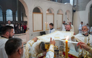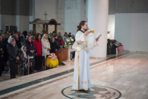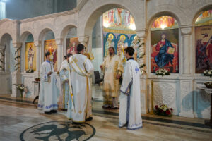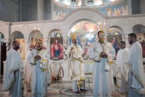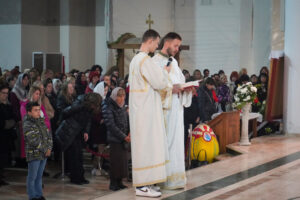 На Светој Литургији у Храму Васкрсења велики број верника је примио Свету тајну причешћа. Све учеснике сабрања братство је даривало васкршњим јајима, док је Владика Исихије оне најмлађе обрадовао чоколадним јајима и зекама.