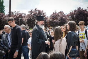 - У тој ђавоиманости човек може да одлучи хладнокрвно да има власт да узима животе ближњих. Уместо да их воли или бар трпи и подноси, он им узима дар Божји- живот. Када стојимо пред овим страшним чином, можемо да се потрудимо, колико је могуће људској природи, да састрадавамо, да не измишљамо неке велике речи и покушавамо људском логиком да схватимо шта се дешава, већ да загрлимо једни друге и да се од срца помолимо за спасење душа оних који су побијени, верујући да су ушли у живот вечни као невино пострадале жртве и да су у загрљају Господа и спаса нашег Исуса Христа. Али, још више да се молимо за оне који су остали без детета, без брата или сестре, вољене личности, а сви спадамо у те, јер смо сви браћа у Господу – поручио је Владика Исихије, уз закључак да после страдања увек долази васкрсење, да Бог дарује вечни живот у блаженству свима који верују, као и да је на свима нама да се преиспитамо куда идемо и да се вратимо светосавском путу, коме нас уче Свети Владика Николај и Ава Јустин.