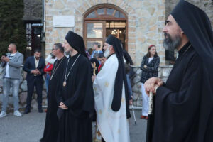 „Црква је заједница спасења, то и овим потврђујемо што се око светих моштију Светих Божјих угодника сабирамо, и том благодаћу и живом водом која извире из њихових живоносних моштију облагодаћених напајамо своје душе и сљедујемо за Христом Богом нашим. Наша су срца радосна, испуњена Вашим доласком у ову велику и древну светињу жупана Првослава, која је данас, на овај дан, на Светог Ђорђа, коме је овај храм и ова света обитељ посвећена, слави 810 година како слави Бога и свог заштитника Светог Ђорђа. Управо, на овај дан у нашу Епархију нам доносите Свете мошти Владике Николаја, што није случајно, све је по дубљем Божјем промислу“, рекао је Владика Методије.