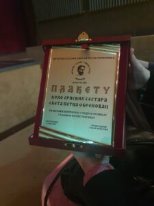 Том приликом, у име Друштва гуслара „Никола Тесла“-Обреновац, председник Саша Лакетић, уручио је Плакету КСС Света преподобна мати Параскева, коју је испред Кола примила сестра Љиљана Нешковић.