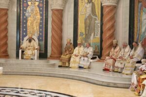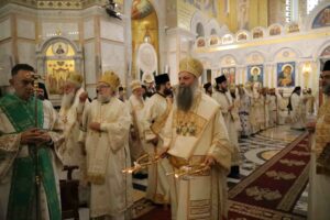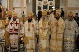 Нека Бог да да овај наш Сабор протекне у миру, у међусобном разумевању, у љубави. Нека протекне у слободи, а то значи да протекне у могућности да свако износећи своје мишљење, свој доживљај и свој став допринесе да се када разговарамо о проблемима сваки проблем сагледа са сваке могуће стране, а када разговарамо о нечему што треба афирмисати да у ономе што афирмишемо, тј. сведочимо буде укључен допринос сваког у једно сазвучје, што јесте симфонија, али у једном гласу. Молимо, браћу, сестре и вас који сте се овде сабрали народе Божји, да се молите за нас епископе, јер Црква смо сви ми. И зато ћу само додати да онда када неко препознаје у Цркви силу Божју он је препознаје у свима нама заједно. И опет, када неко, а имамо нажалост неретко и такве изазове и искушења, изврће оно што је реч Цркве, неретко клевеће, неретко мења тезе, неретко одређује шта Црква треба да чини, он то каже свима нама. Није Црква само четрдесет или педесет епископа него је Црква народ Божји, а епископи су на месту и по обличју Христовом да би приносили у име свих жртву бескрвну и да би вршили тајну Христову.