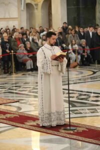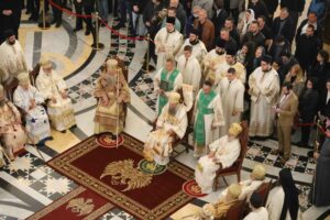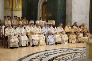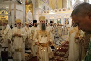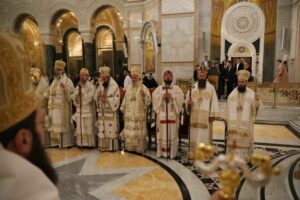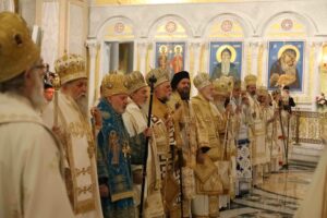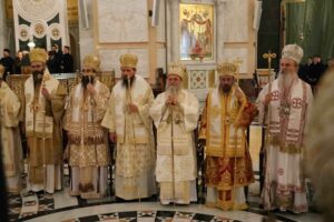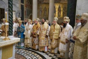– Браћо архијереји, браћо свештеници, драга браћо и сестре, по промислу Божјем и по благодати Духа Светог ми, архијереји Српске Православне Цркве, сабрали смо се у престоници нашој и служили свету Литургију овде, у саборном заветном храму нашег народа. Служили смо свету Литургију, како је дивно владика Игњатије рекао, да бисмо показали да је Црква сабор, заједница. Сваки сабор добија свој смисао и своју пуноћу само кроз сабор који јесте света Литургија на којој нисмо само сабрани ми људи, него смо сабрани у Христу и око Христа са свим светима и сви ми заједно.