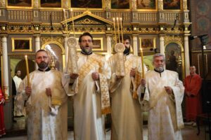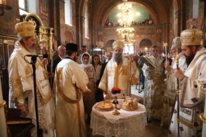 Поводом славе Вазнесењског храма и Града Београда, предстојатељу Српске Православне Цркве су саслуживали Високопреосвећени Митрополит црногорско-приморски г. Јоаникије и преосвећена господа епископи источноамерички Иринеј, ваљевски Исихије и западноевропски Јустин, у присуству градских званичника и многобројног верног народа.