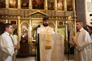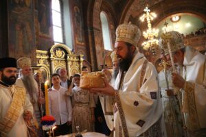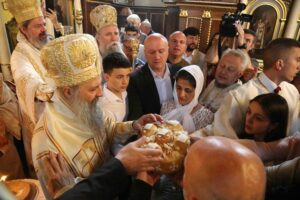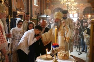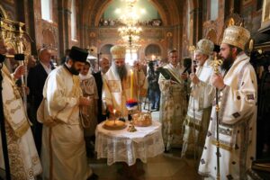 После освећења славских приноса домаћинa овогодишње славе г. Миленкa Џелетовићa и литијског опхода око храма, патријарх Порфирије је испред крста у порти Вазнесењског храма служио помен жртвама пострадалим у нацистичком бомбардовању престонице 1941. године, као и свим жртвама пострадалим 3. и 4. маја ове године у градским општинама Врачар и Младеновац.