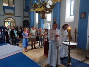 - Због посредничке улоге коју имају између Бога и нас људи, ми прослављамо све свете анђеле и арханђеле и, као хришћани, трудимо се да се угледамо на њих. Као што су нам светитељи пример и путоказ како се долази до престола Божјег, исто су нам тако и анђели пример и путоказ како се борави у заједници са Богом, јер позив и назначење свих нас јесте да живимо у слави Божјој и заједници са Богом. То ћемо чинити ако долазимо у храм Божји који јесте место славе Божје и место сусрета човека и Бога- објаснио је отац Дарко Ђурђевић.