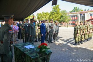 Потпредседник Владе и министар војни г. Милош Вучевић поздравио је присутне и пожелео срећу свима који су положили заклетву, подсетивши их на њихову велику улогу у заштити земље.