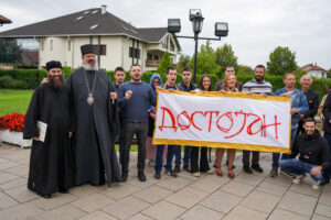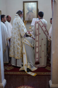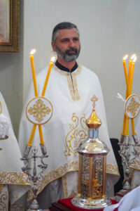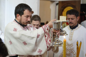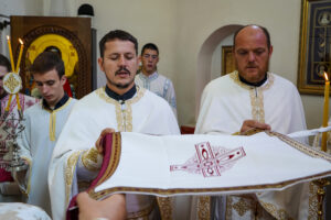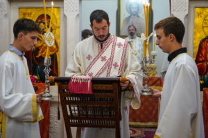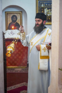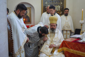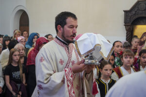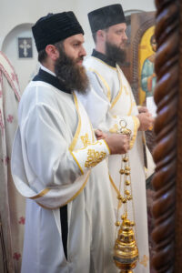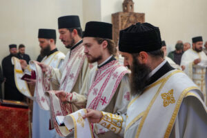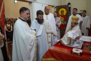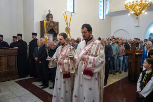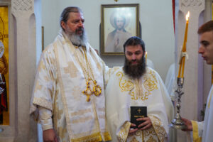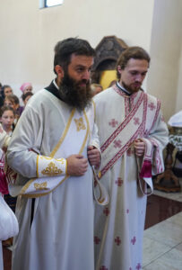 На Светој Литургији Владика Исихије је рукоположио у чин свештеника ђакона Мију Бојиновића, сабрата Храма Светог Георгија, који дуги низ година успешно предаје веронауку у оближњој Основној школи „Десанка Максимовић“ и духовно предводи Светосавску омладинску заједницу. Архипастирску грамату, којом се обнародује ова одлука, прочитао је ђакон Александар Панић. Честитајући оцу Мији Бојиновићу, Владика Исихије је упутио благослов њему и његовој породици и пријатељима, са жељом да и даље успешно предводи младе Светосавце. На крају сабрања, у порти храма, чланови СОЗ- а развили су заставу Републике Србије и транспарент са натписом „Достојан“, што је сјајна потврда љубави која их са њиховим духовником повезује.