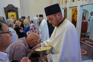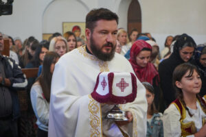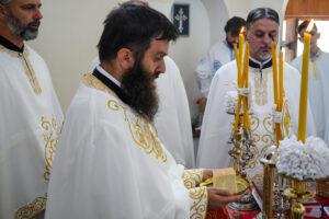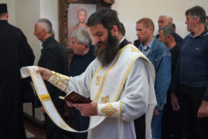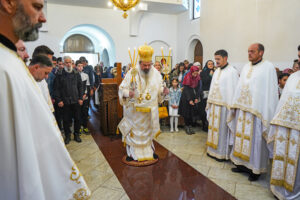 Литургијску проповед Владика Исихије је закључио позивом својој духовној деци да у молитви не забораве браћу и сестре на Косову и Метохији, који страдају и трпе прогоне зато што носе српско име и припадају православној вери.