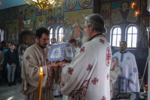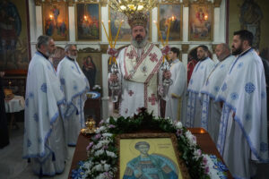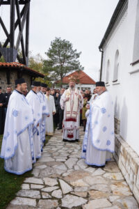 - Црква Светог Димитрија памти као великомученика, као једног од најистакнутијих светитеља Божјих и највећих заштитника православља. После његове смрти, почела су да се дешавају чудеса у првој црквици направљеној на његовом гробу, а потом и у великој цркви у којој су његове свете мошти. Оне су мироточиве и зато се и он зове „мироточиви“. Свети Димитрије је у свом родном граду Солуну, где је проповедао веру Христову и подстицао вернике на богоугодан живот. Његове мошти периодично изобилно точе миро и не могу се избројати исцељења која је свом народу упућивао- рекао је Владика Исихије, благосиљајући верни народ да молитве Светог Димитрија увек буду са њим.