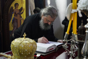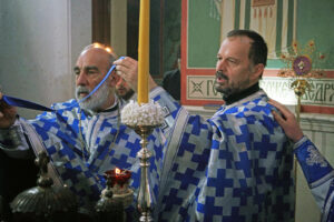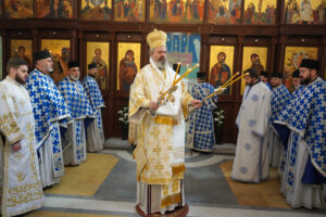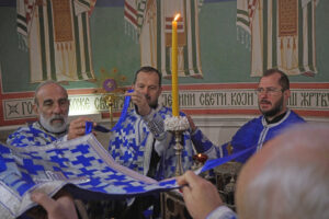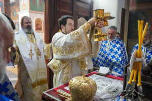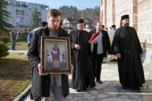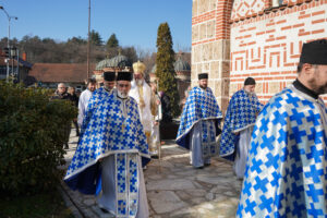 Након Литургије у убској саборној светињи, Владика Исихије је преломио славски колач у малом храму, који носи име великог ранохришћанског подвижника.