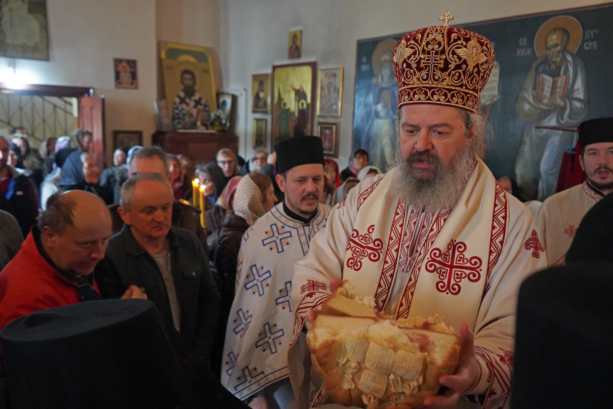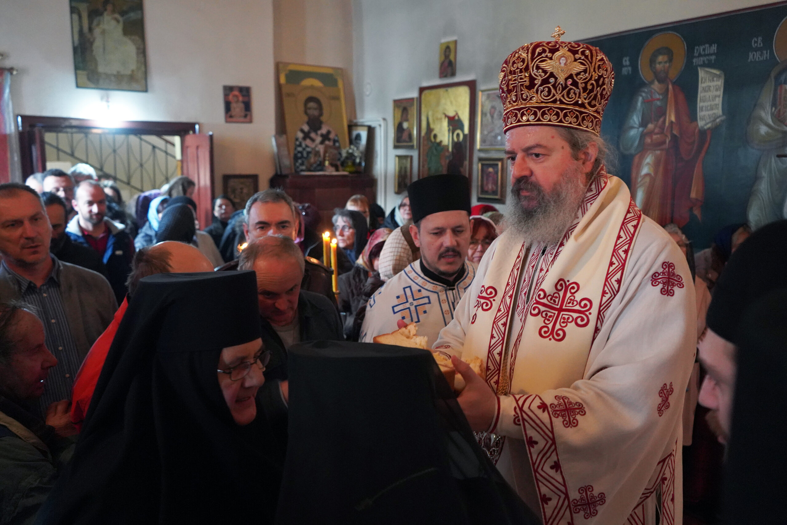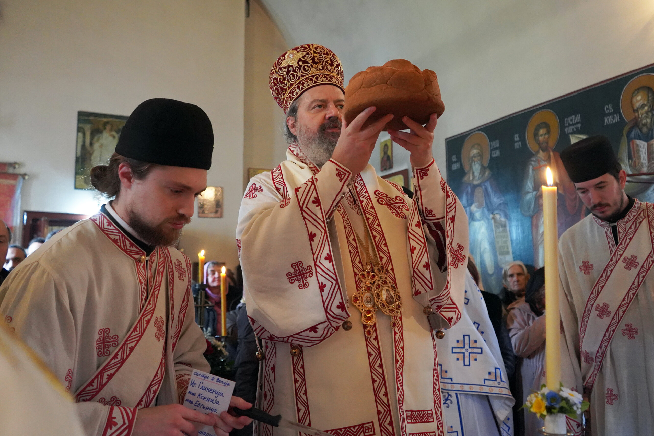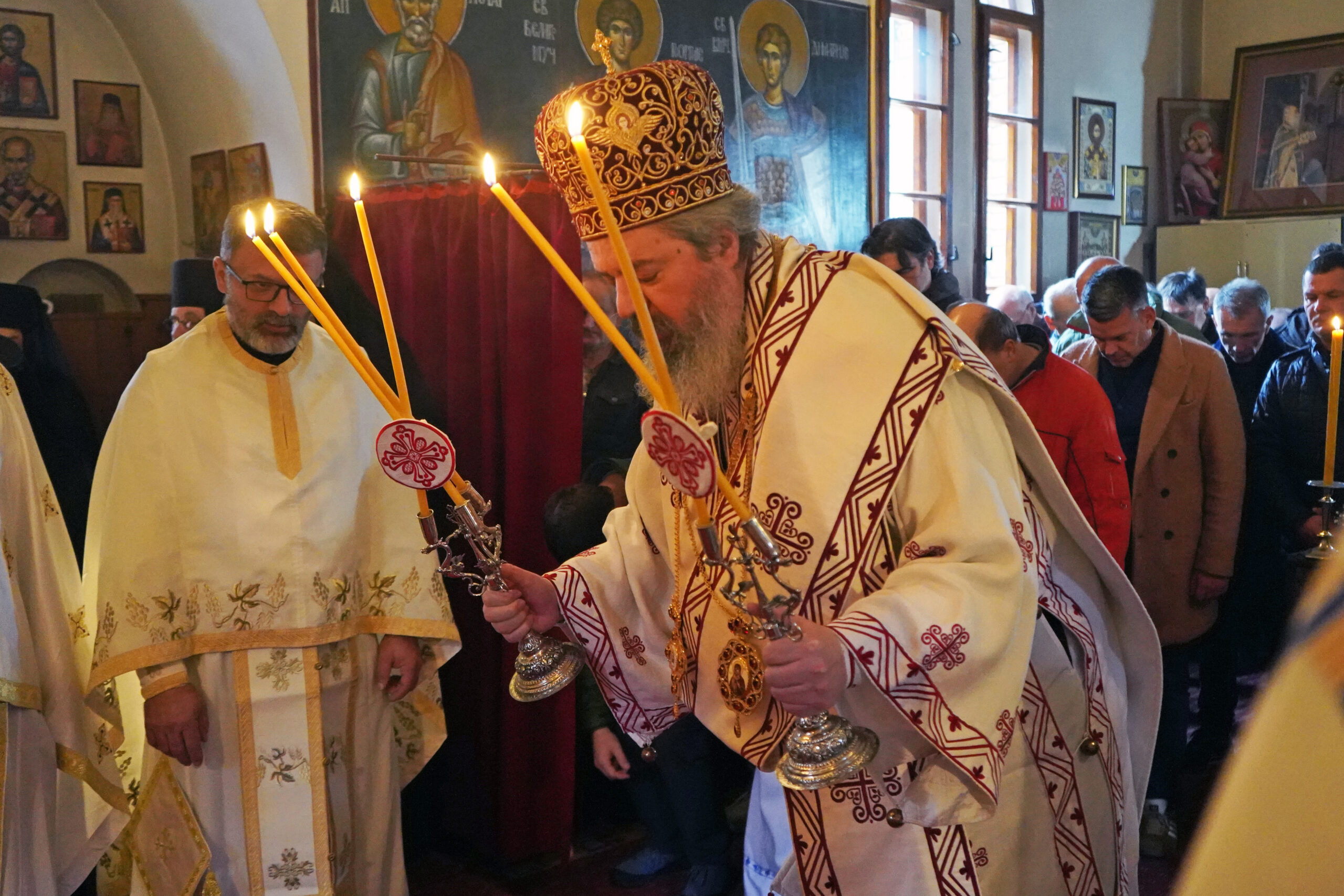 На крају Литургије, Епископ Исихије је честитао празник окупљенима, подсетивши на вековно служење Свете Литургије Јована Златоуста кроз коју живи наша Црква и кроз коју приносимо благодарење Господу Христу за сва знана и незнана, видљива и невидљива доброчинства.