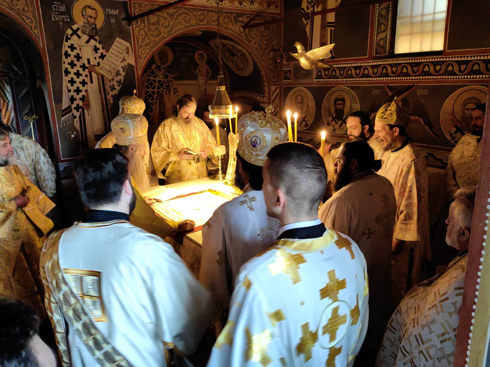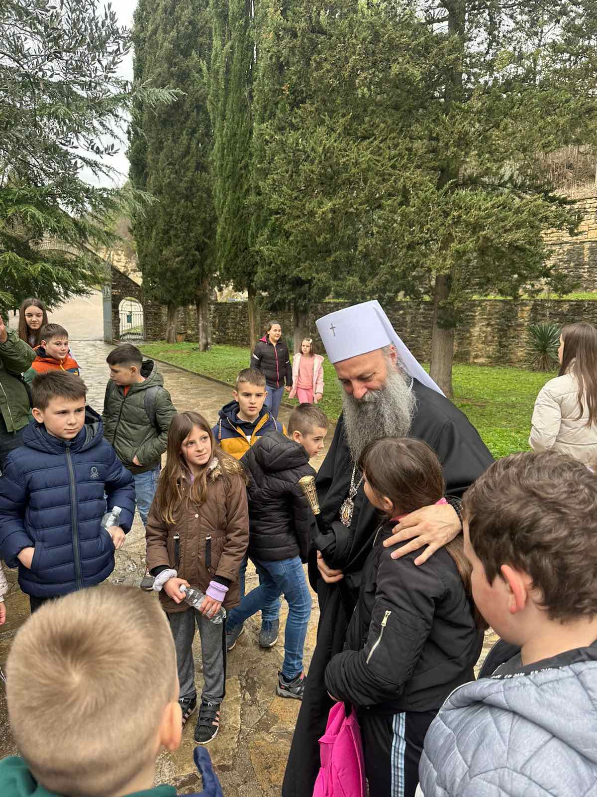 Данас је баш ту, над древном катакомбом, у манастирском храму, Његова Светост Патријарх српски г. Порфирије, уз саслужење отачаствених архијереја, ректора српских православних богословија, свештенства и монаштва из Далмације, али и других наших црквених области, служио свету Литургију, у част патрона овог црквено-школског завода Тројице светих Јерараха: Василија Великог, Григорија Богослова и Јована Златоустог.