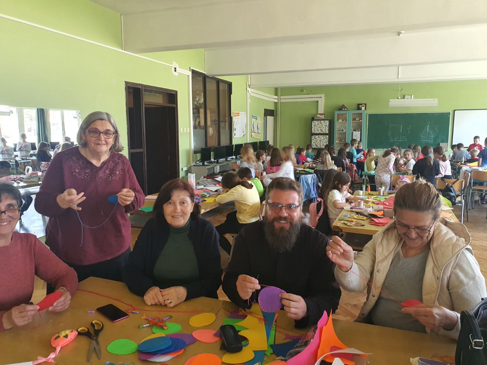 Све у свему, једно радосно суботње поподне за ђаке и њихове сатруднике на васкршњој радионици.