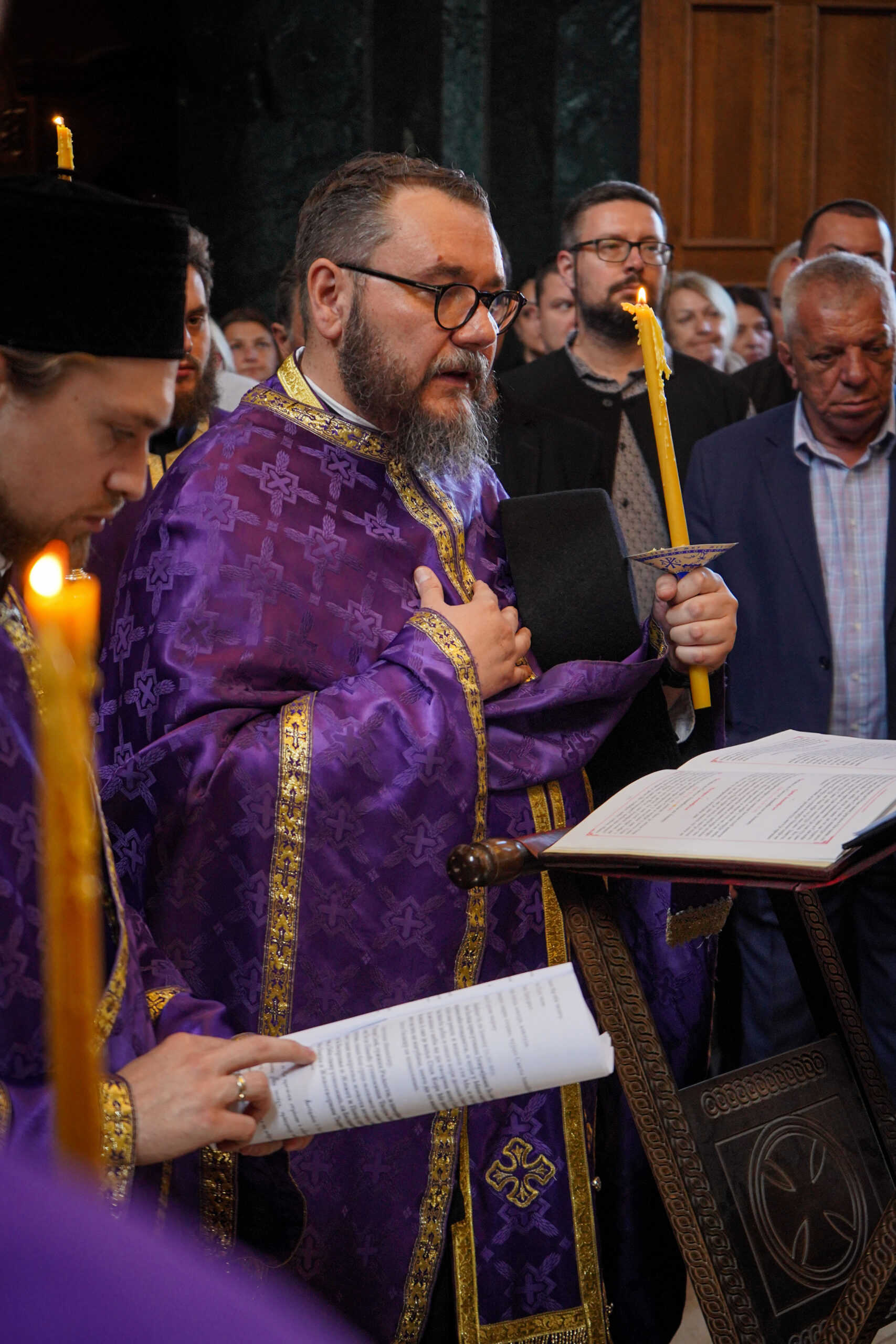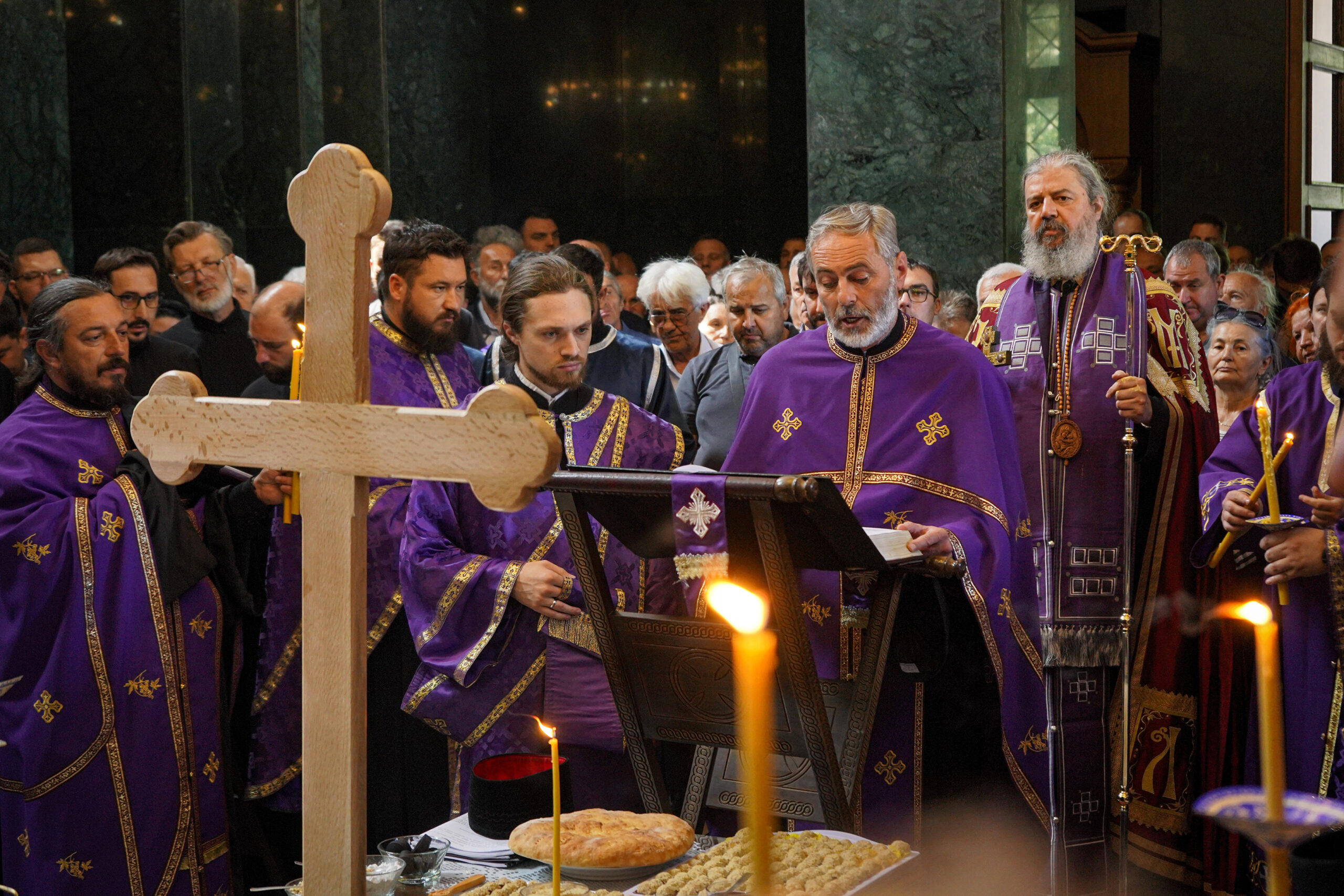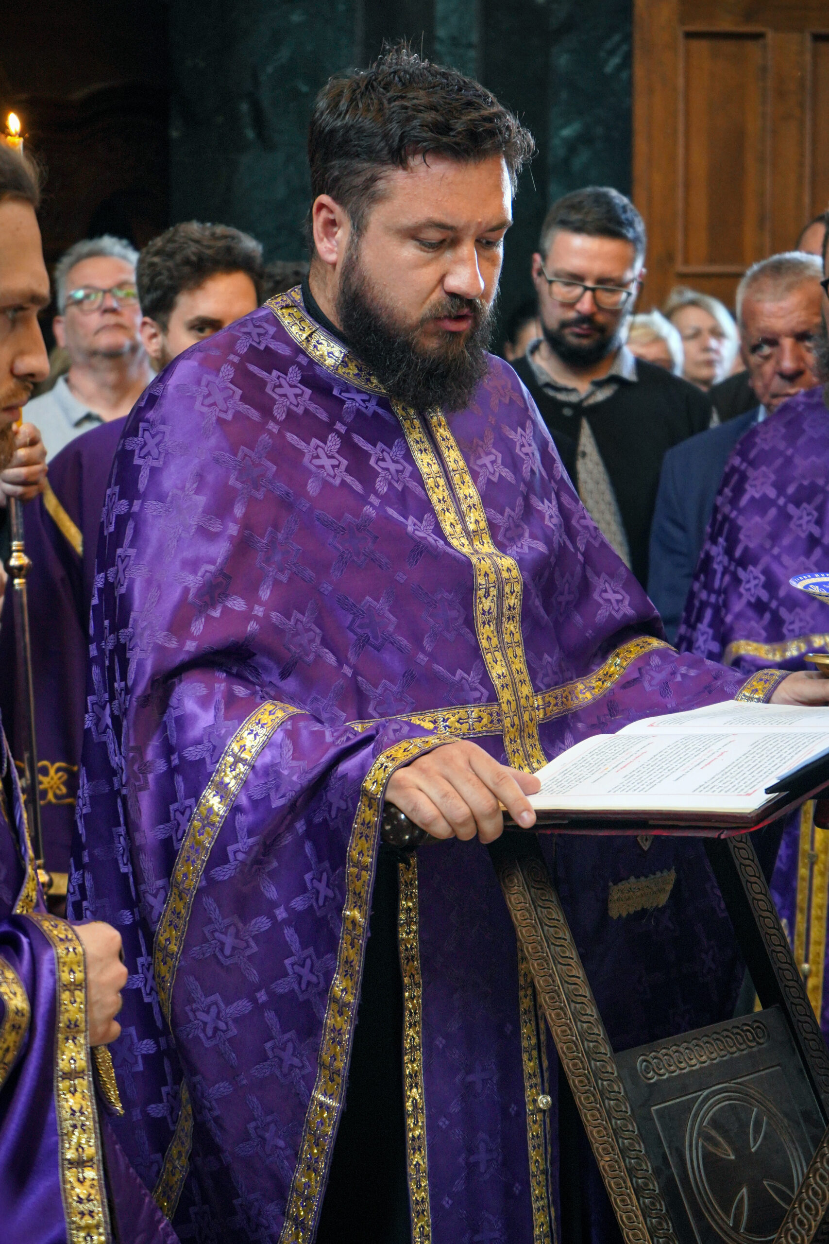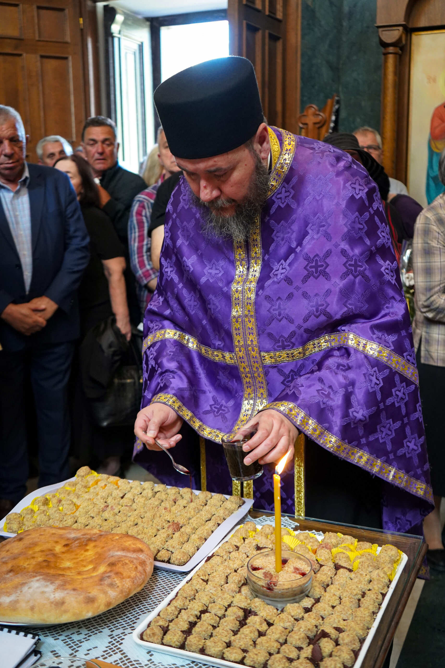 По благослову Владике Исихија, окупљенима се обратио свештеник Немања Павловић, син оца Дарка, изразивши благодарје Господу што је на диван празник- Лазареву суботу повео себи душу његовог оца. Такође, отац Немања Павловић је заблагодарио свима који су ових дана заједно са њима, породици, пријатељима, свештеницима, протиним парохијанима и свима који приносе молитве за њега у светињама широм Србије.