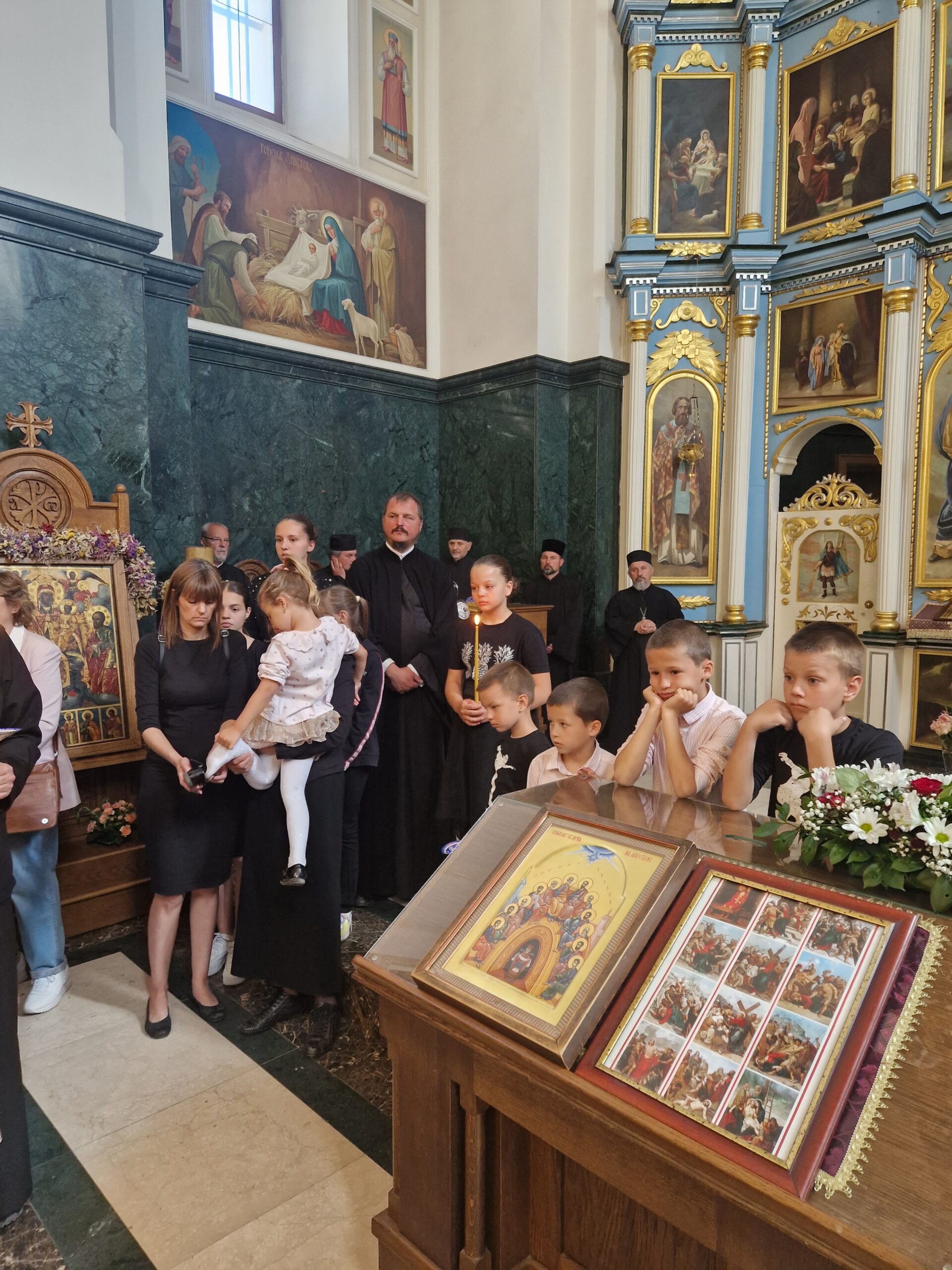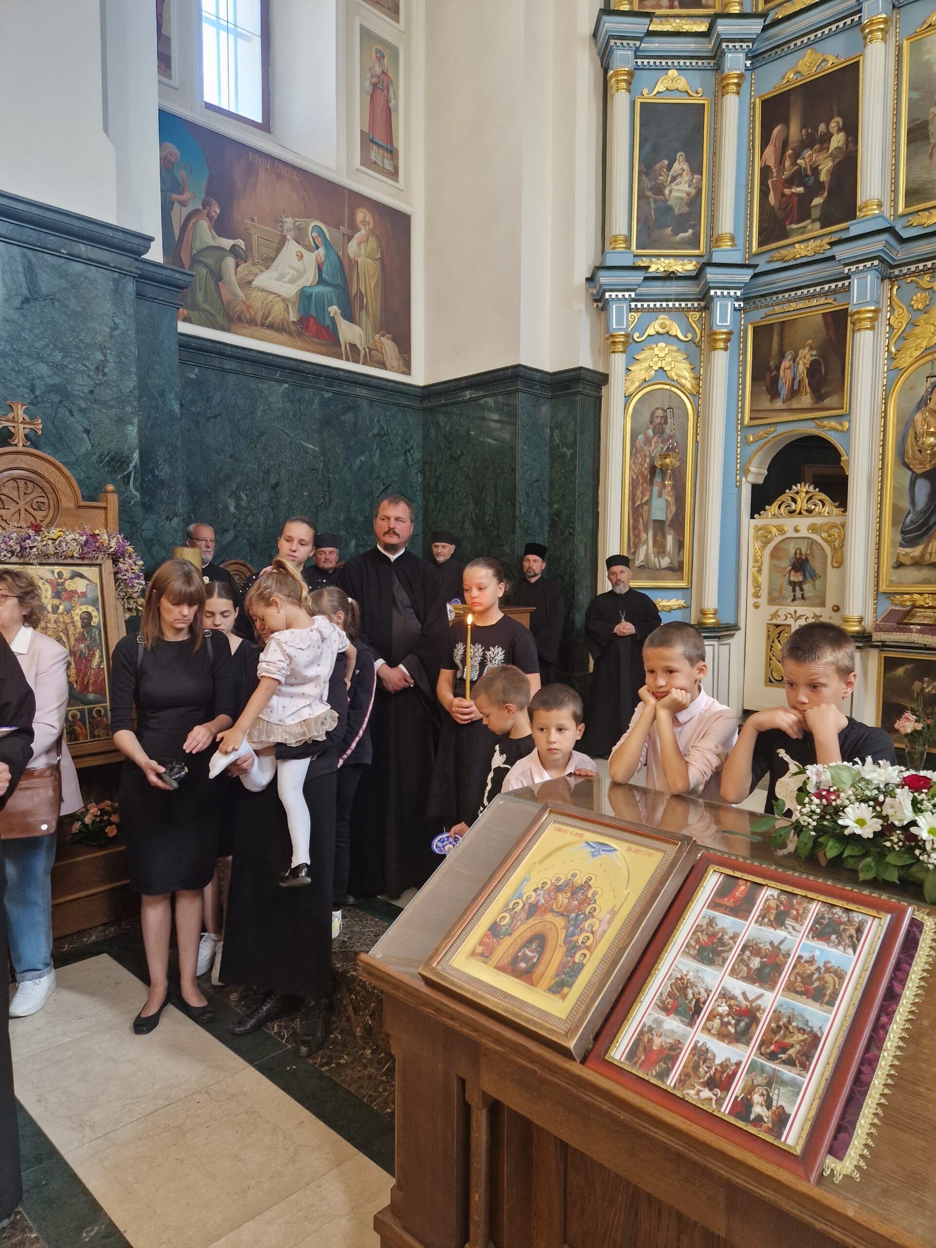- Ако постоји туга, не сме да постоји очајање, јер оно је одвајање од Бога и упокојеног. Уместо надгробног ридања, да певамо песму као они који имају наде, песму похвалну „Слава теби, Боже…“- рекао је Владика Исихије, благосиљајући протиницу Милицу и све чланове породице оца Дарка Павловића.