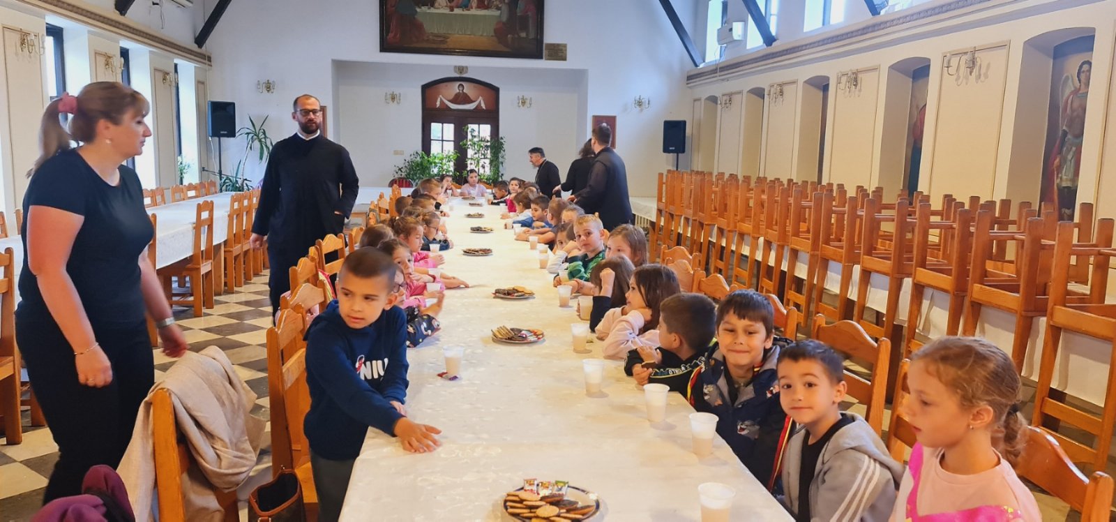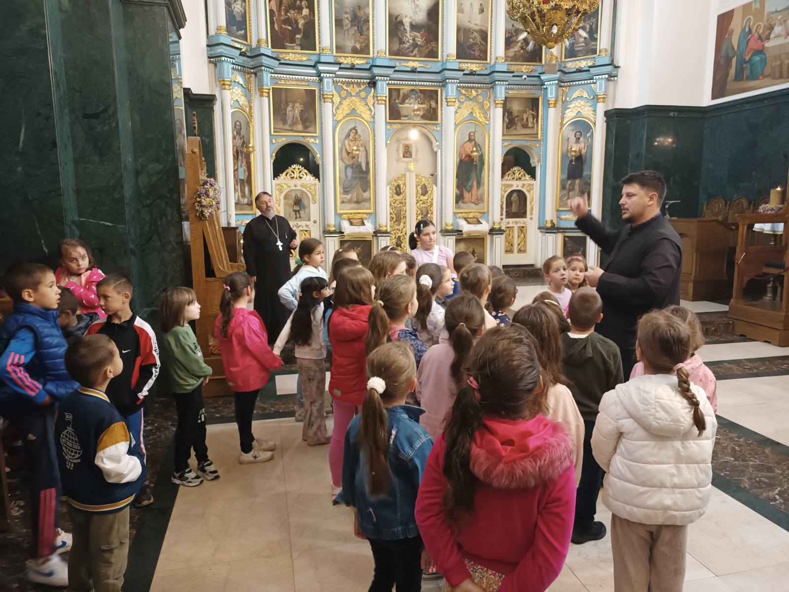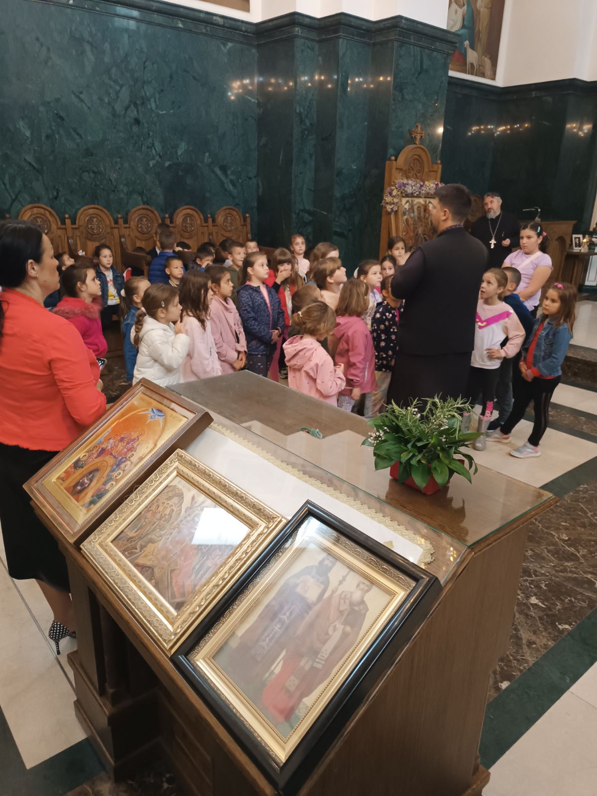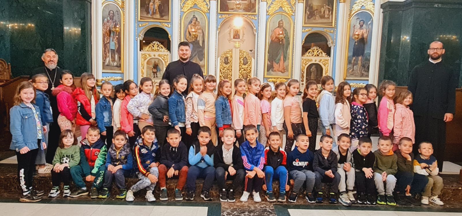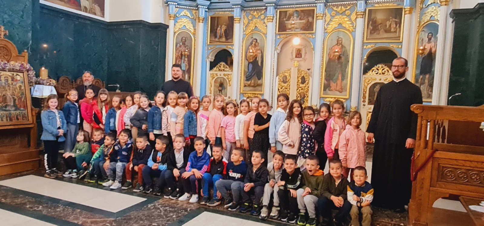 Децу и васпитаче дочекао је старешина храма, протојереј-ставрофор Љубомир Миловановић, а мини час о самом храму и богослужењима у њему одржао је јереј Слађан Филиповић. После неколико занимљивих питања, заједничког разгледања храма и фотографисања, деца су у пратњи васпитача прешла у црквену салу на неформално дружење и освежење.