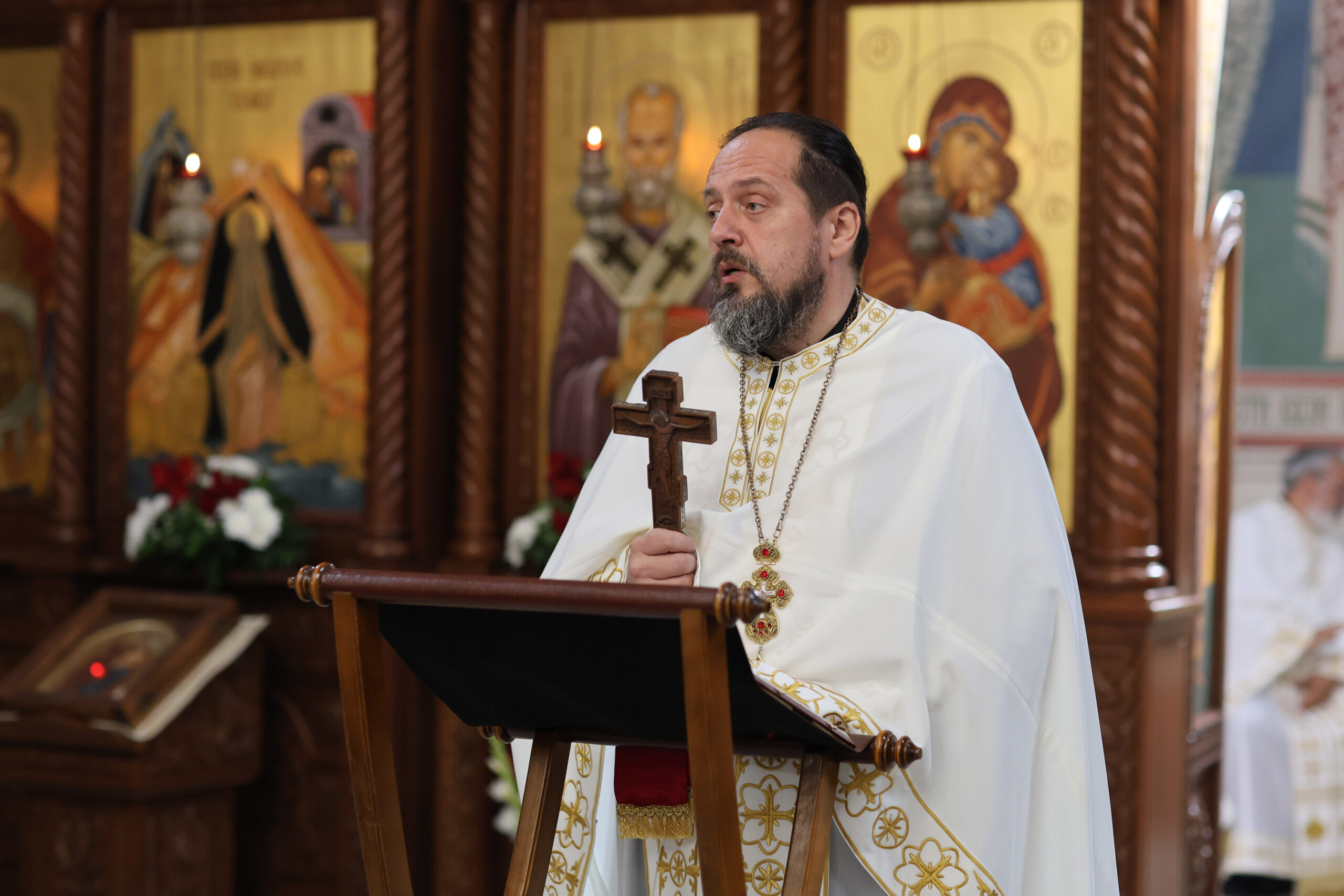 - Господ није математичар, то смо ми људи. Господ од нас жели само срце и свако ко осећа љубави према Господу достојан је да приђе и да се причести… Господ није дошао због здравих, него због болесних. Господ није дошао због праведника, него због грешника. Где је вечеравао? Јесу ли самог Господа осуђивали зашто обедује међу грешницима и прељубницима? Јесу! Господ каже:„Не требају здрави лекара него болесни“. Нас сад позива на ту исту вечеру, нас грешнике од којих сам први ја. То исто изговарамо и у молитви пред причешће. Када се сјединимо са Њим и осетимо милост Божију, онда иду сузе покајања- део је празничне беседе оца Михаила.