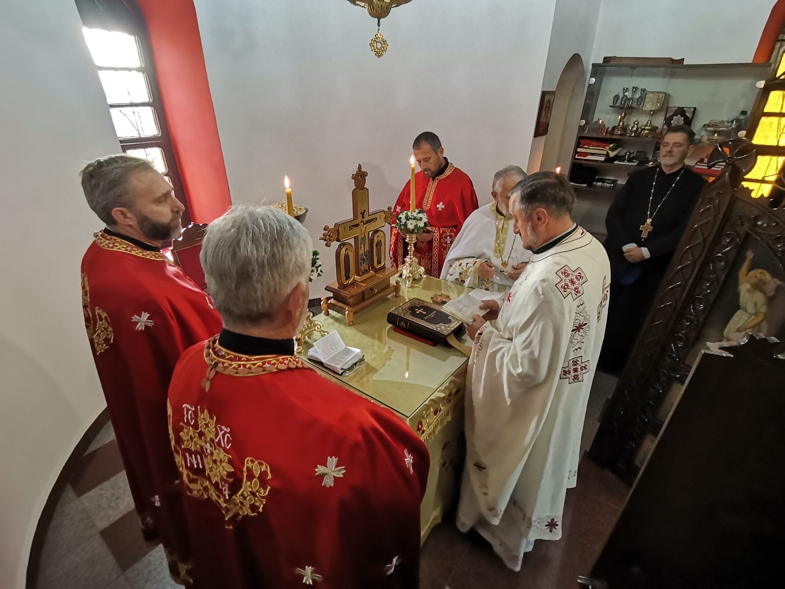Светим евхаристијским сабрањем предстојао је протојереј Станиша Ђокић, уз саслужење осталих свештеника тамнавског намесништсва. У својој богонадахнутој беседи, отац Станиша Ђокић је протумачио текст Светог јеванђеља и поучио верни народ о љубави и храбрости у исповедању која треба да краси сваког хришћанина. У продужетку Свете Литургије учињен је опход око храма са читањем Светог јеванђеља и благосиљањем верних.