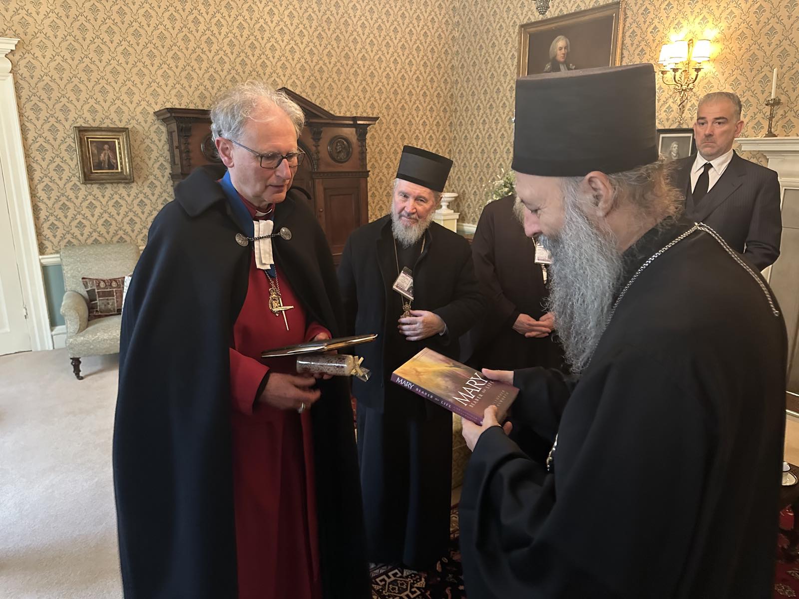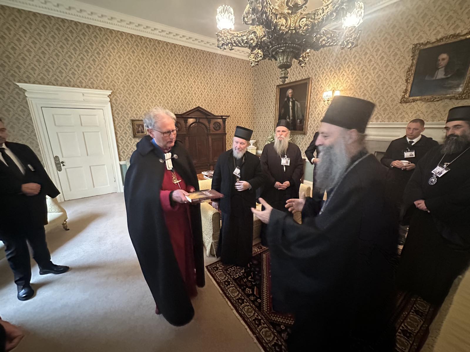 Поглавару Српске Православне Цркве добродошлицу је пожелео Преузвишени Епископ г. Кристофер Коксворт, старешина краљевске капеле и пренео лични поздрав Његовог Величанства британског краља Чарлса III. Патријарх је домаћину поклонио икону Светог великомученика Георгија, а епископ Кристофер је узвратио монографијом о Пресветој Богородици, коју је сам написао.