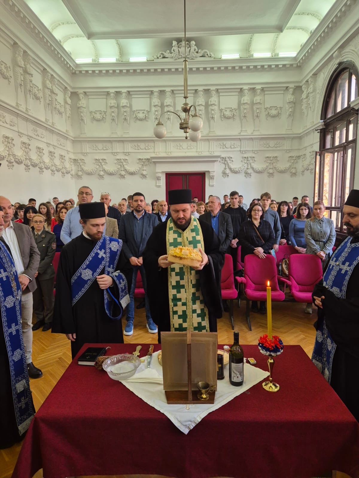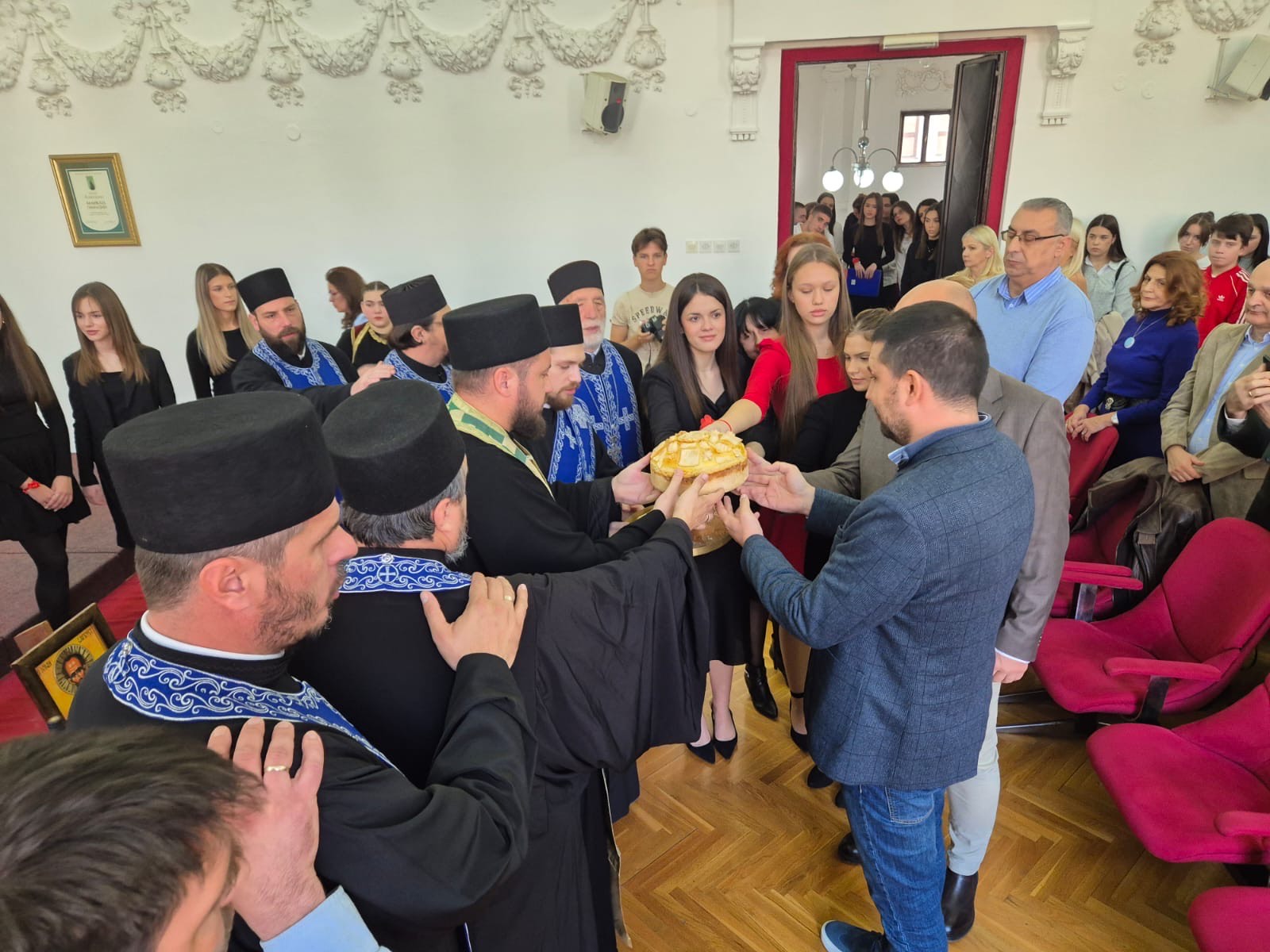 – Освећењем славског жита и ломљењем колача, као и пригодним уметничким програмом, запослени и ученици Ваљевске гимназије традиционално су обележили празник свог небеског заштитника Светог Јована Златоустог-