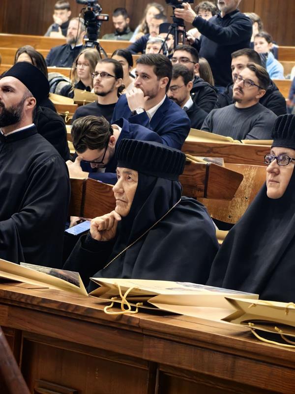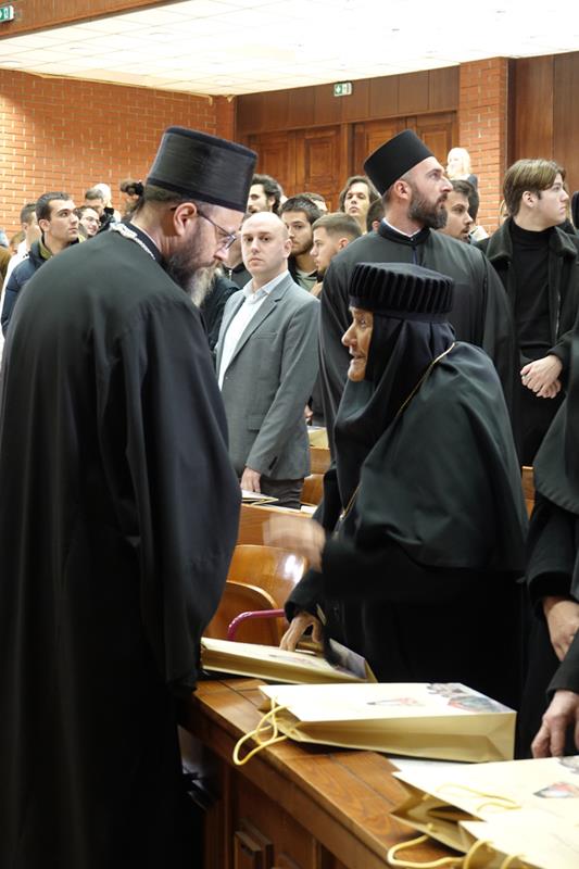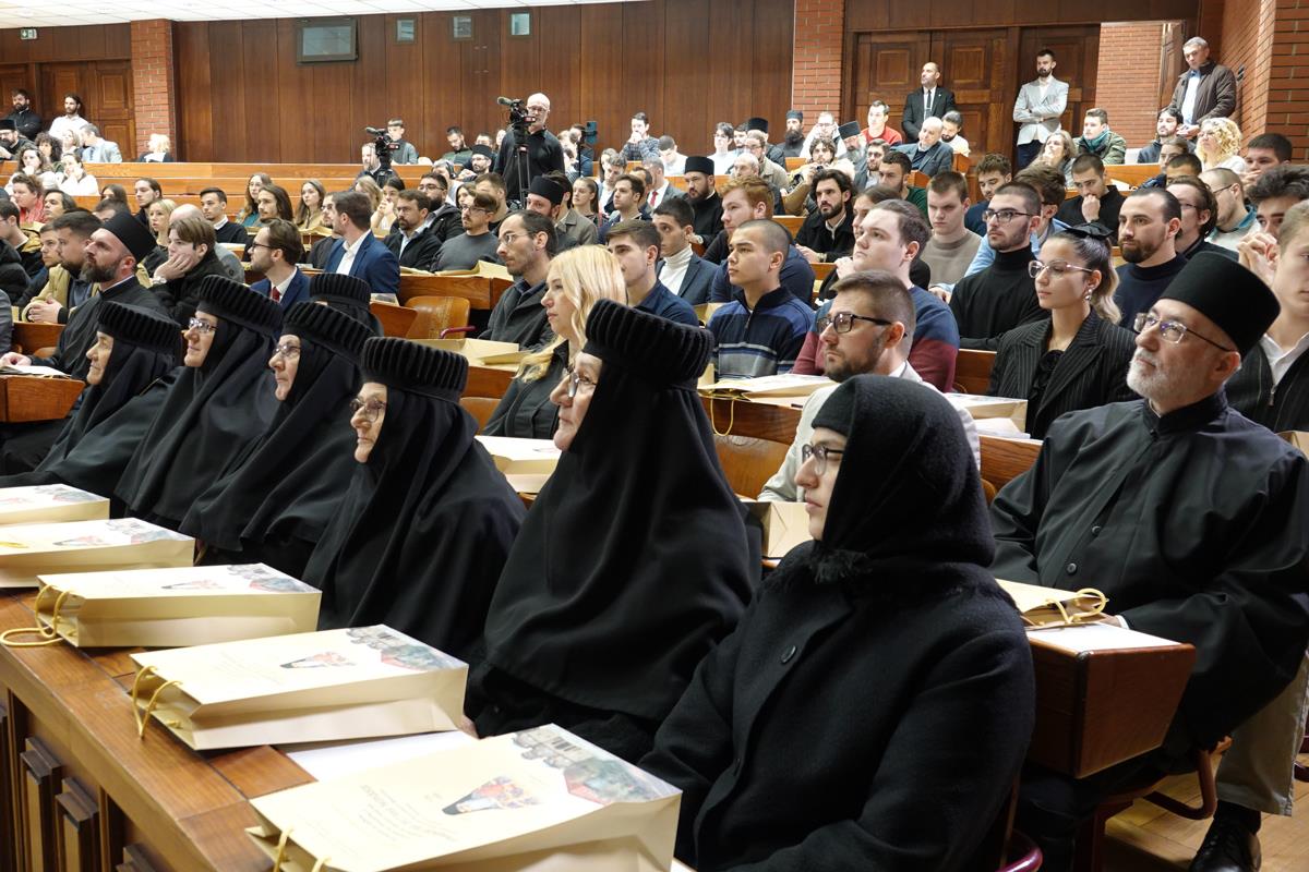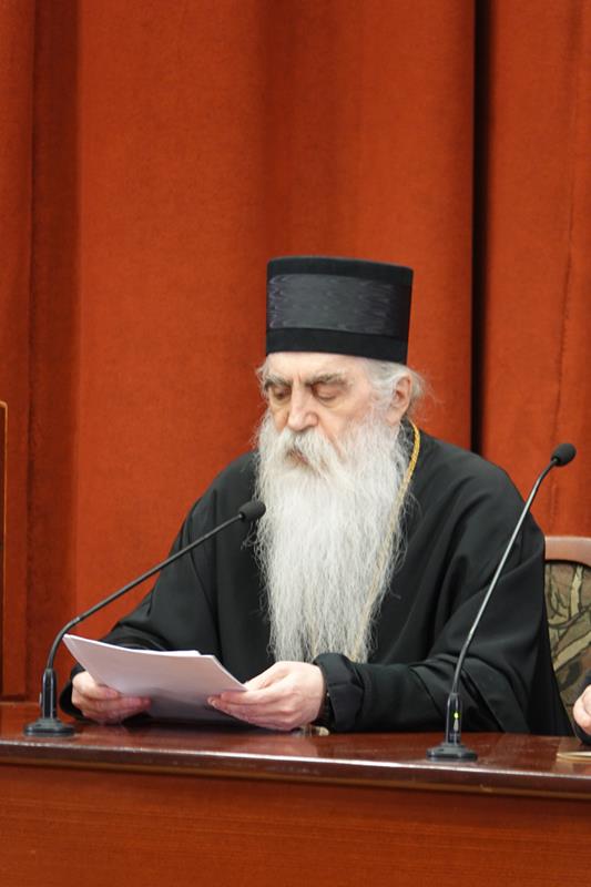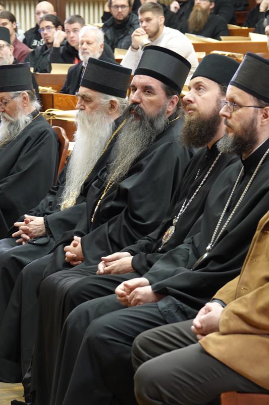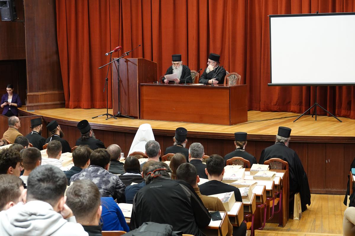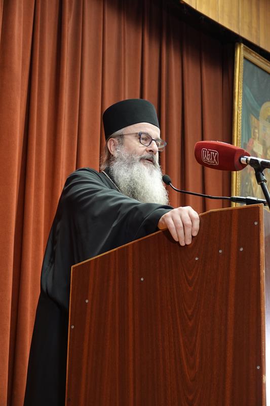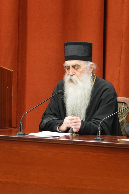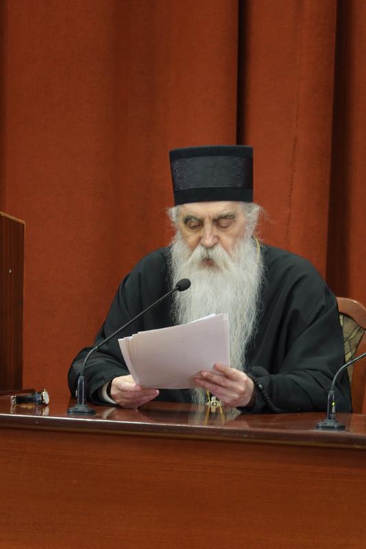 – Посебну захвалност упућујемо излагачима, који ће нам предочити неке од кључних аспеката делâ Преподобног оца Јустина. Читавим својим бићем и светим примером, Он је сведочио да академско богословље, апстраховано од светописамског диктума што смо видели очима својима, што сагледасмо и руке наше опипаше (I Јн. 1, 1), постаје беспредметно и ризикује да се сведе на беживотну, празну орахову љуштуру. Истинско богословље је сведочанство искуства божанских стварности, а Преподобни Јустин Нови, професор и учитељ ове часне установе, јесте огњени стуб који нам показује пут аутентичног црквеног богословствовања. Академски подвиг мора бити погружен у молитву и аскезу, јер само кроз овај свештени спој ума и срца богослов постаје достојан сасуд у који се Дух Свети настањује, те једино тако човек може достићи максиму и остварити се као духоносац. Ту важи оно познато: ако се истински и истинито молиш онда си истински и истинити богослов, а ако си истински и прави богослов онда се истински и истинито молиш.