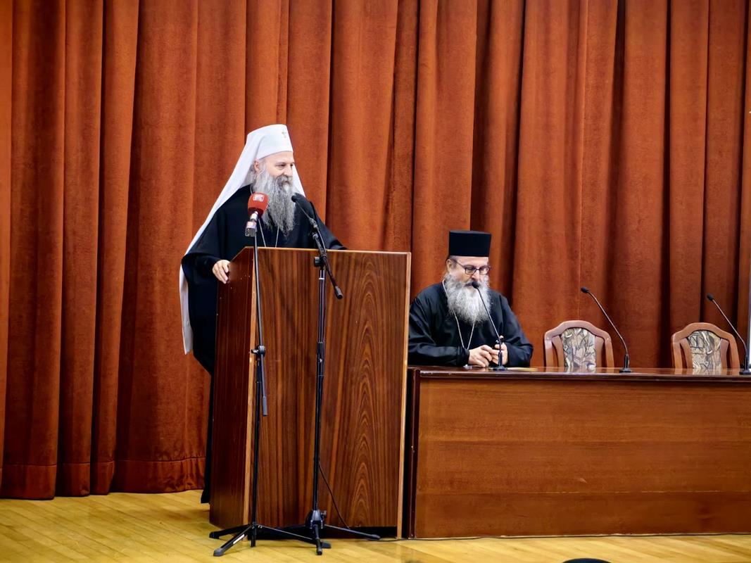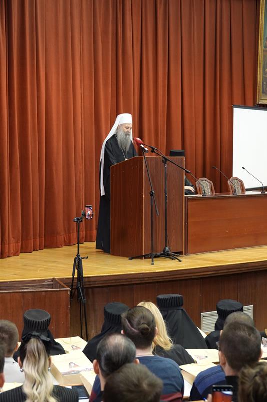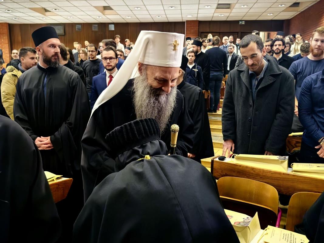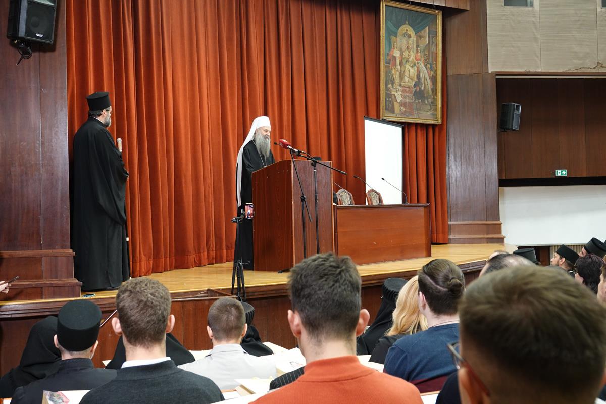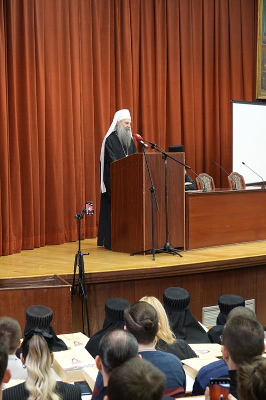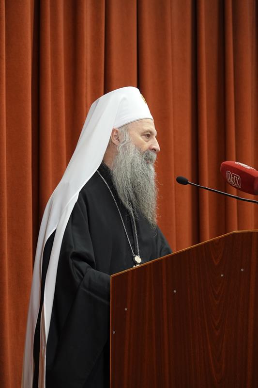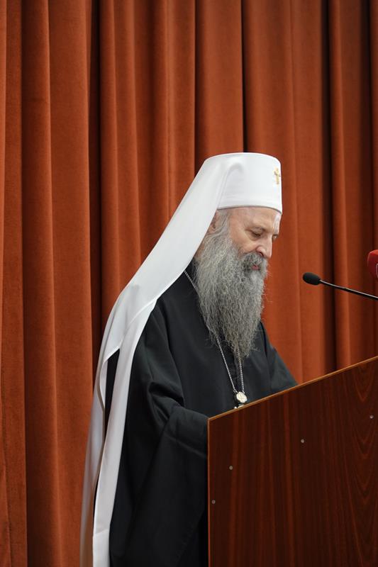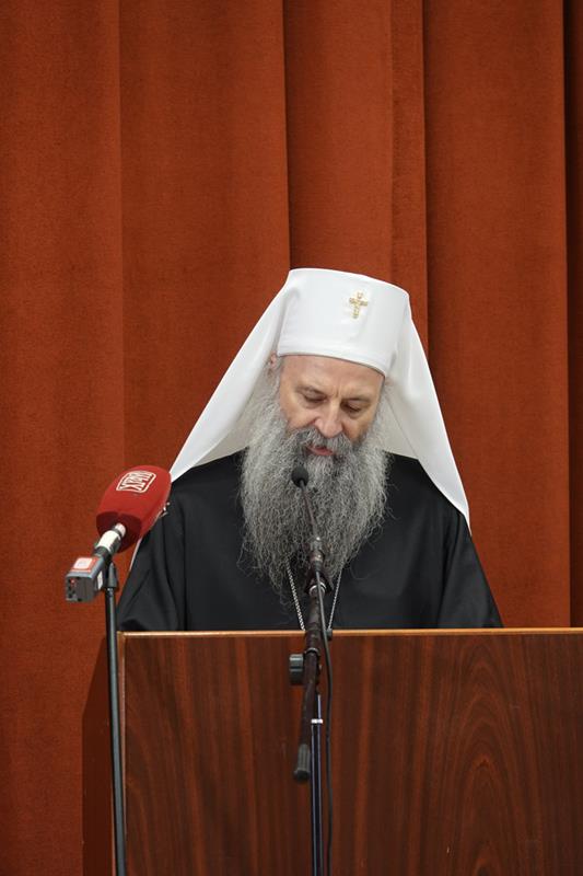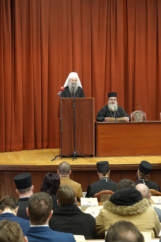 – Организовање ове конференције сведочи о дубокој потреби свих нас за сусретом са ликом и делом Светог Јустина Ћелијског, не само као великог богослова и учитеља који је у одређеном историјском тренутку засијао и показао нам се путоказом, већ као неуморног молитвеника пред Господом који и данас делује и утиче на путеве наше Цркве и ове светосавске образовне установе и својим заступништвом се стара да тај пут узводи ка Христу Господу. Наше интересовање за Светог Јустина Ћелијског, дакле, није само и једино аналитичке природе, где би се његове речи, дела и текстови разматрали искључиво као објекти студиозних проматрања. Напротив, изражавамо уверење да у његовом богословљу пребива неописива сила која поседује надахњујућу моћ, те да свако ко се ње истински дотакне, може постати аутентични тумач неизрецивог искуства Цркве, а никад лака жртва грабљивих и заводљивих идеолошких и политичких струјања. Још једанпут се захваљујемо на вашем присуству и учешћу, дубоко уверени да ће ова конференција за све нас бити извор духовног обогаћења и прилика за благодарност Богу који је својој Светој Цркви и овом свештеном училишту подарио Преподобног Јустина Ћелијског врсног човека, корифеја богословља и ревносног свештенослужитеља. У духу овога, свима вама дарујемо благослов Свете Христове Српске Православне Цркве, призивајући на сваког од вас изобилну благодат и просветљење Утешитеља, Духа мудрости и разума – поручио је Светејши г. Порфирије.