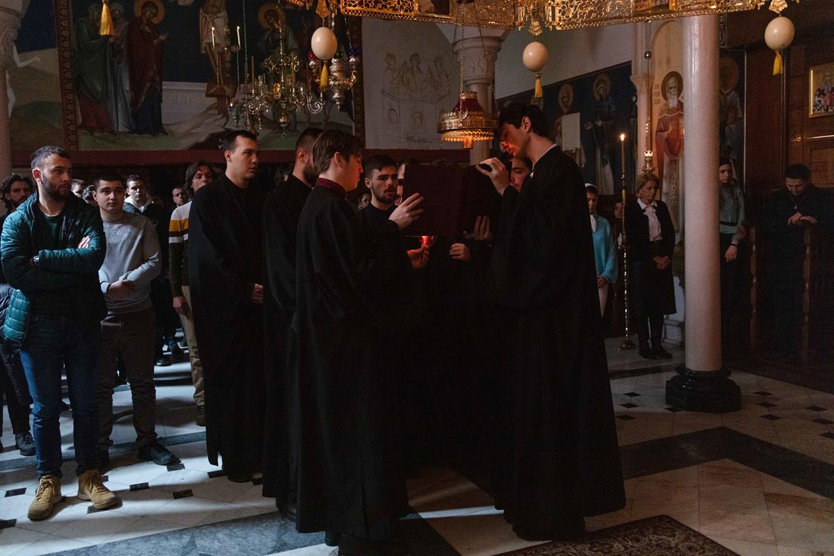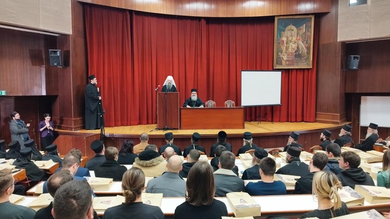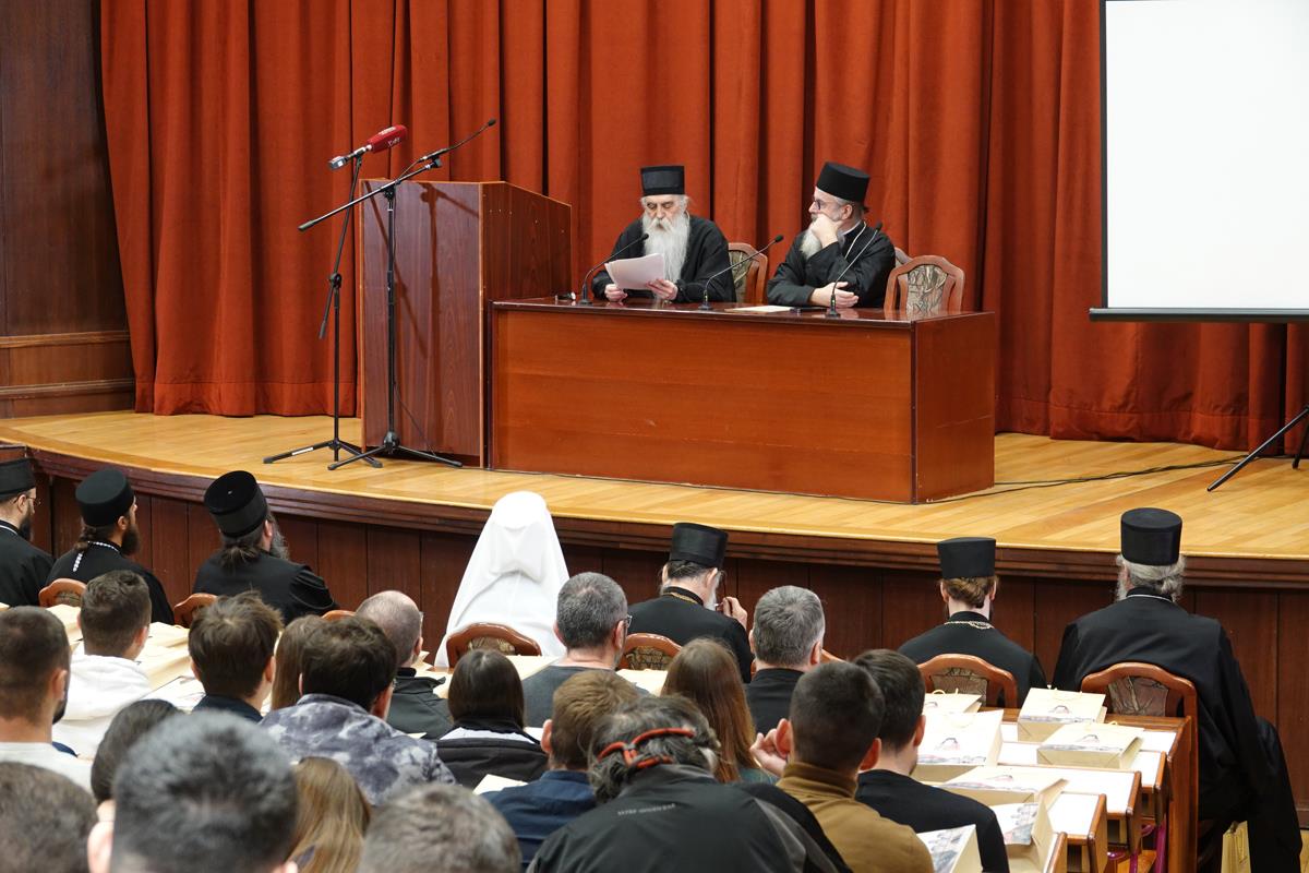 Научни скуп је молитвено започео светом архијерејском Литургијом коју је, у факултетској капели Светог Јована Богослова, служио Преосвећени Епископ топлички г. Петар, викар патријарха српског. Радни део симпосиона отворио је Његова Светост Патријарх српски г. Порфирије, који је поздравио присутне, високопреосвећену и преосвећену господу архијереје, декана, професоре, предаваче, студенте и излагаче на научној конференцији која ће се данас и сутра, 5. и 6. децембра 2024. године, одржати у Великом амфитеатру Православног богословског факултета Универзитета у Београду.