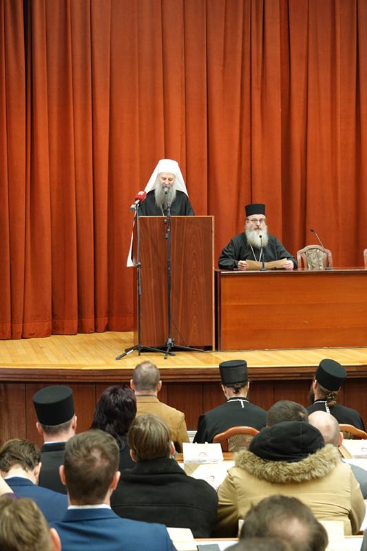 – Срдачно вас све поздрављамо и желимо искрену добродошлицу на ову међународну конференцију која, осим учесникâ домаћина из Србије, окупља и оне који су нам стигли из иностранства, са циљем да једним устима и једним срцем, притом као Црква, имајући ум Христов (ср. I Кор 2, 16) обележимо 130 година од рођења, 45 година од уснућа и 10 година од преноса моштију Преподобног оца Јустина Ћелијског, доктора богословских наука и професора Православног богословског факултета Универзитета у Београду, а пре и изнад свега, истинског човека Божјег, живо Јеванђеље Христово, светог оца и учитеља наших дана поручио је патријарх Порфирије и нагласио: