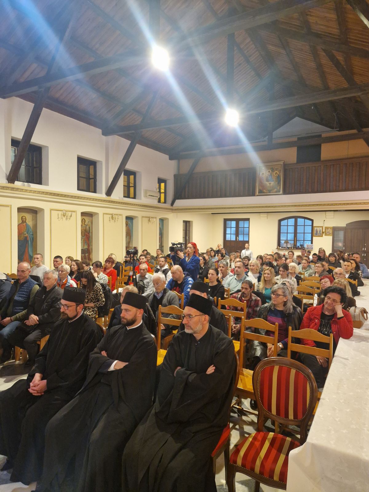 Како данас многи дају себи за право да коментаришу шта је Црква и како Црква треба да функционише, отац Бранко је истакао да нисмо ми потребни Цркви, него Црква нама. „Црква је нама мера, а не ми Цркви“, подвукао је предавач, додајући да је на челу Цркве Христос, а Он је светлост, али и путовођа нашег живота. Нема спасења изван Цркве, а иконе, о којима се нарочито говори у овој, Недељи Православља, јесу визуелни доживљај Цркве и веома су важне за човеково узрастање у вери. Управо је тај визуелни доживљај повезан са светлошћу, јер је чуло вида најизраженије од свих чула. „Ми не поштујемо даску, стакло, папир на којима су насликане иконе, него поштујемо поруку иконе, а то је изображени лик светитеља“, нагласио је прота Ћурчин. Икона када има сигнатуру, односно када је именована она јесте то, али када није, она је иста као било која уметничка композиција. У наставку свог излагања, отац Бранко је пажњу посветио тзв. Арт терапији, присутној у заједници „Земља живих“, визуелној терапији, важној за стварање критичког односа према видљивим доживљајима. Зато је важно да радимо на себи, јер „ми одлучујемо када је у питању наше спасење“. „Сачувај ме, Боже, од самога себе, од осталог ћу се сачувати сам. Најтеже је бити ЈА!“, закључио је отац Бранко, пожелевши свима сабранима да им Велики пост промени лоше навике, те да се труде да буду нормални, сматрајући да је то највећи подвиг данашњице.