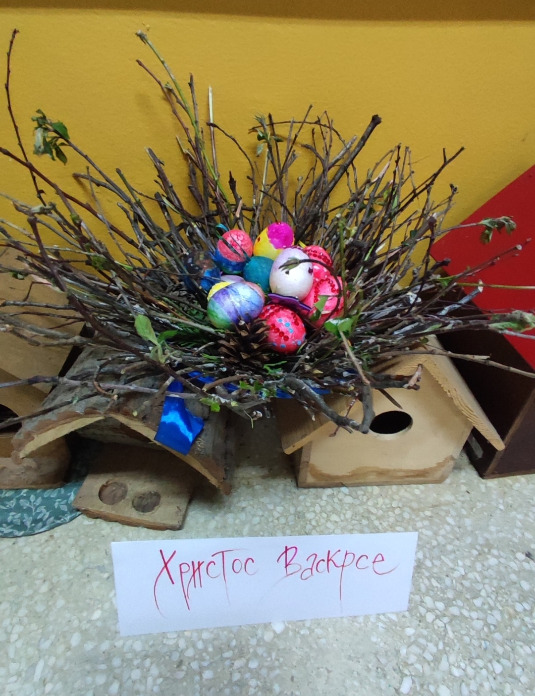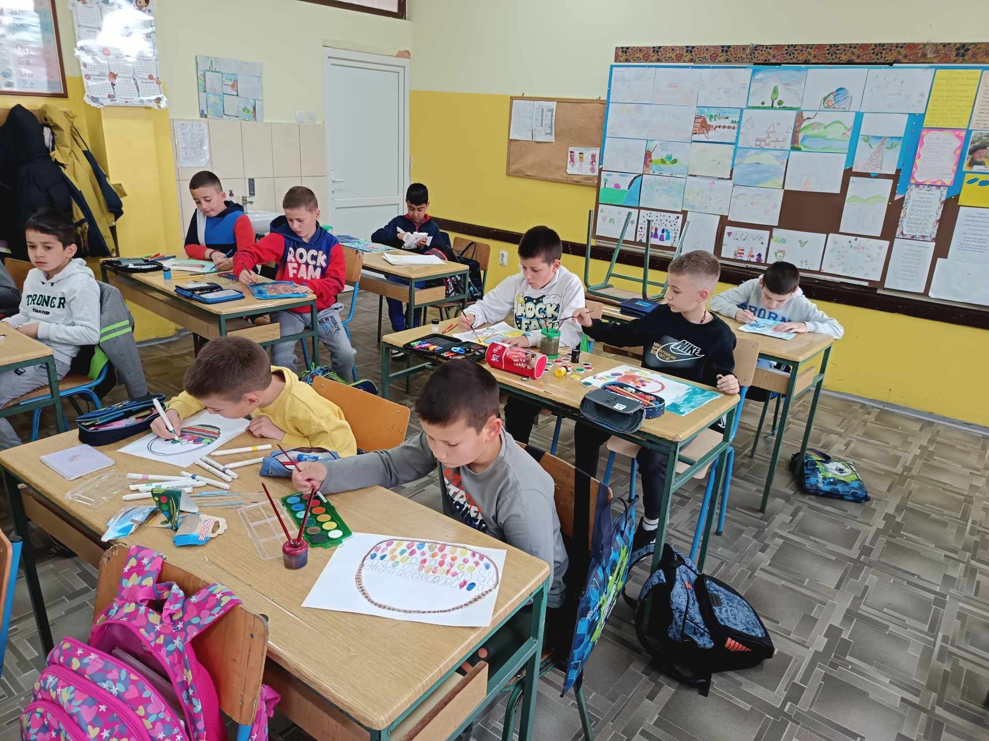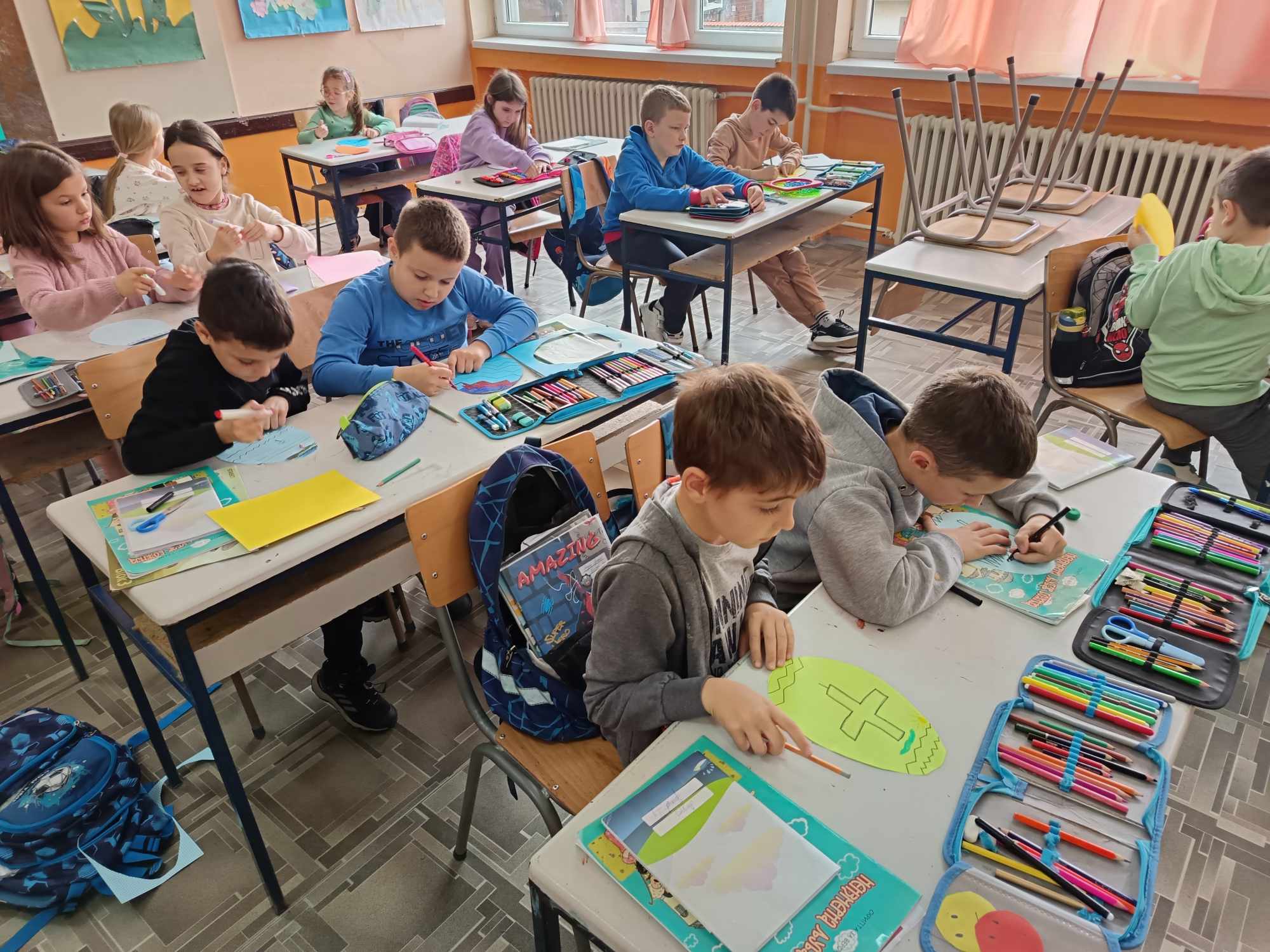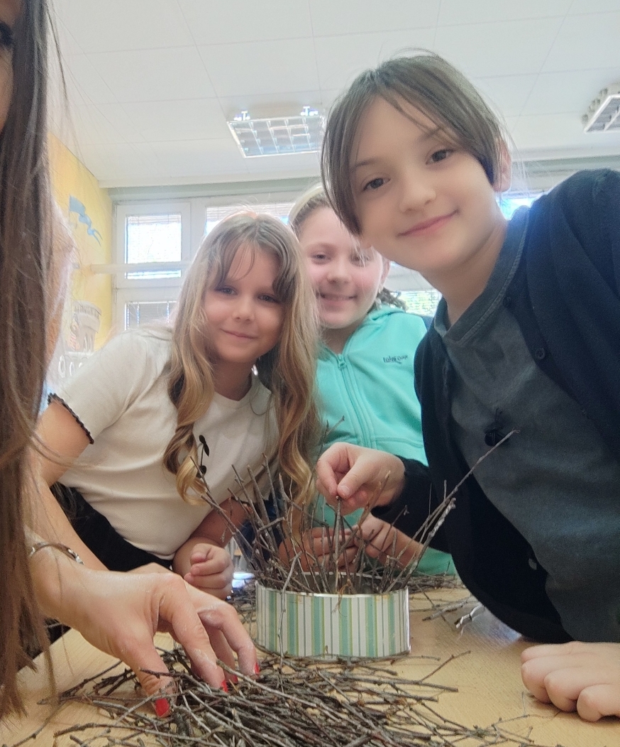 Ученици нижих разреда Основне школе „Десанка Максимовић“, учествовали су у васкршњој радионици, припремајући се за најрадоснији празник Васкрсења Христовог. Поред фарбања јаја техником по слободном избору, прављена су гнезда од гранчица, која су послужила као корпице за шарена јаја.