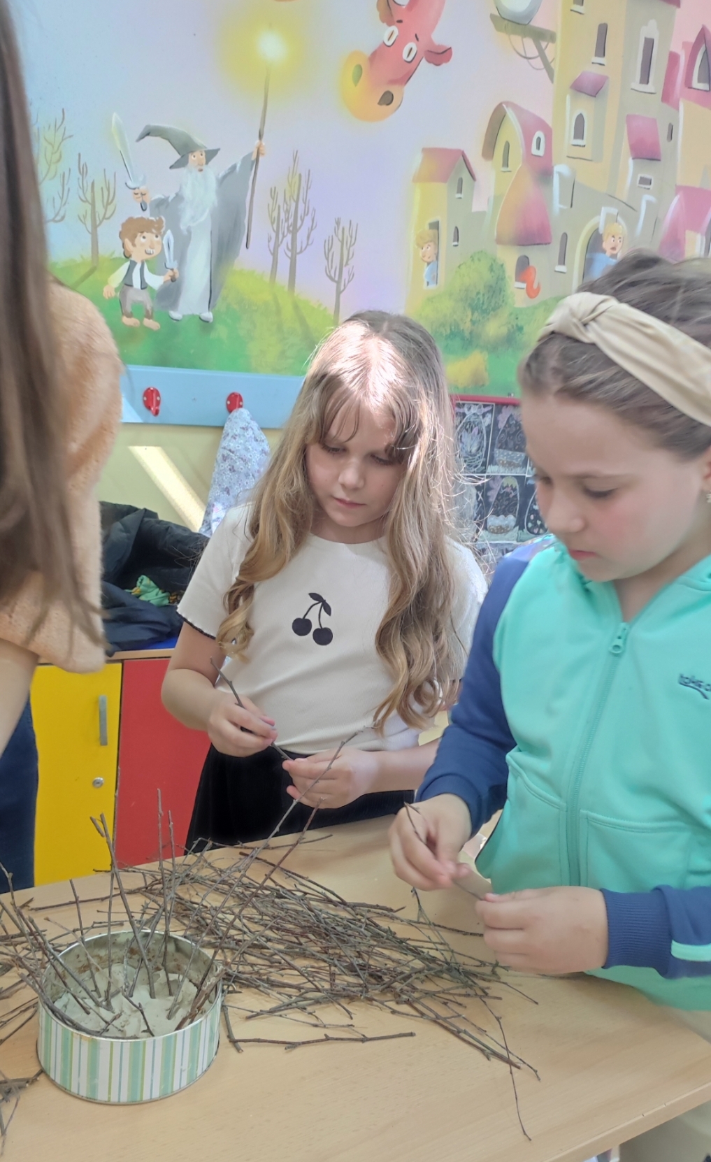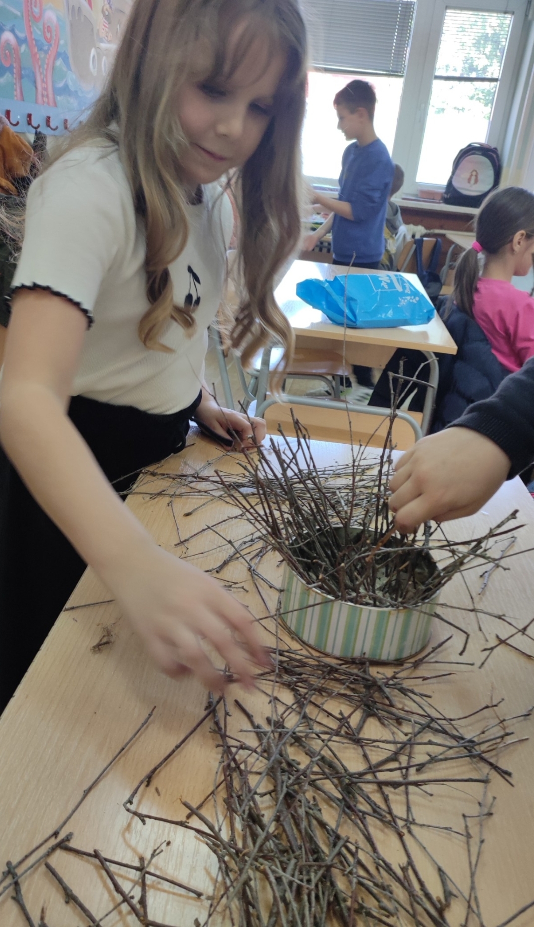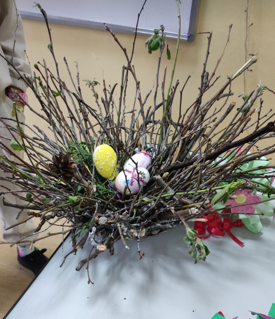 Ученици нижих разреда Основне школе „Десанка Максимовић“, учествовали су у васкршњој радионици, припремајући се за најрадоснији празник Васкрсења Христовог. Поред фарбања јаја техником по слободном избору, прављена су гнезда од гранчица, која су послужила као корпице за шарена јаја.