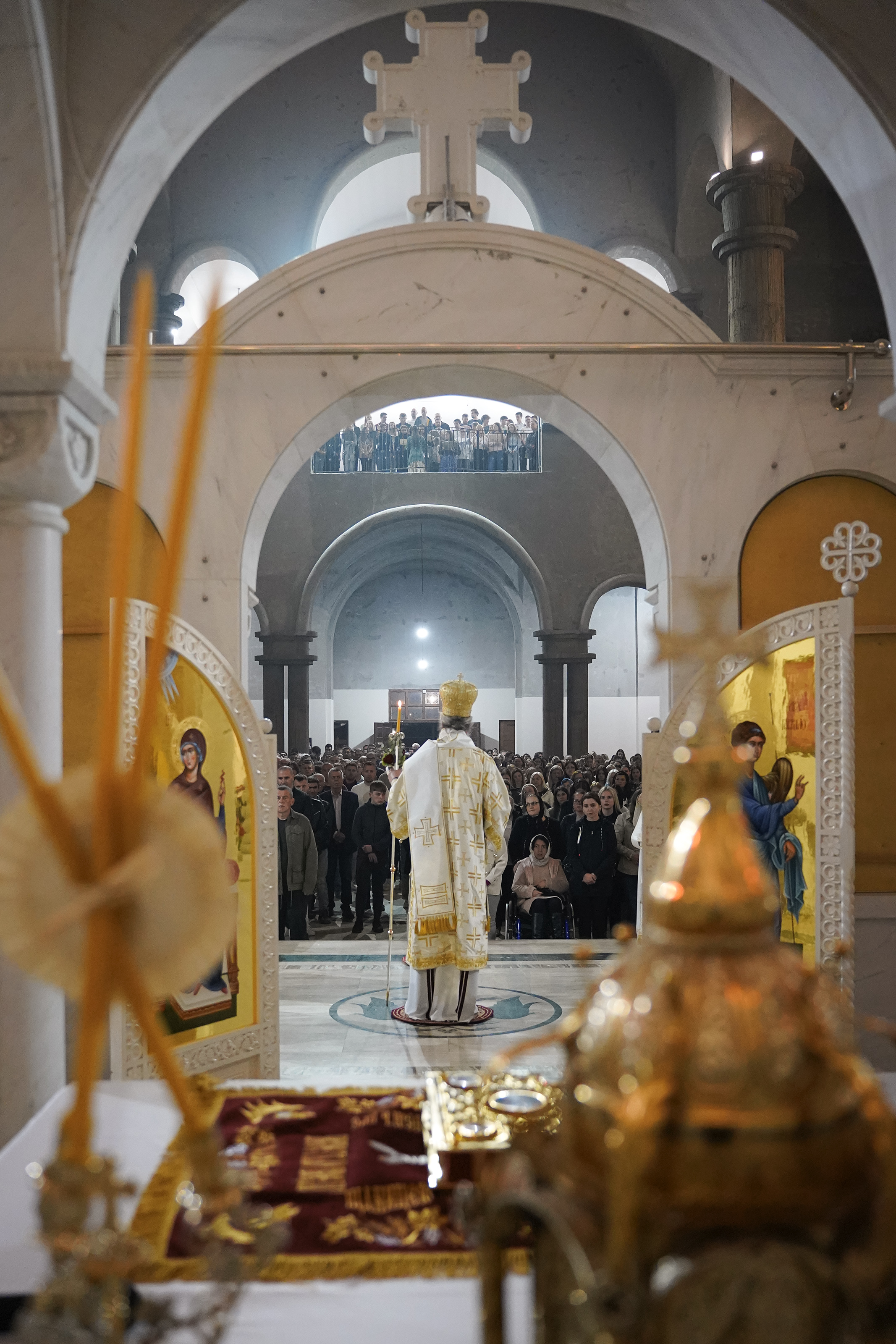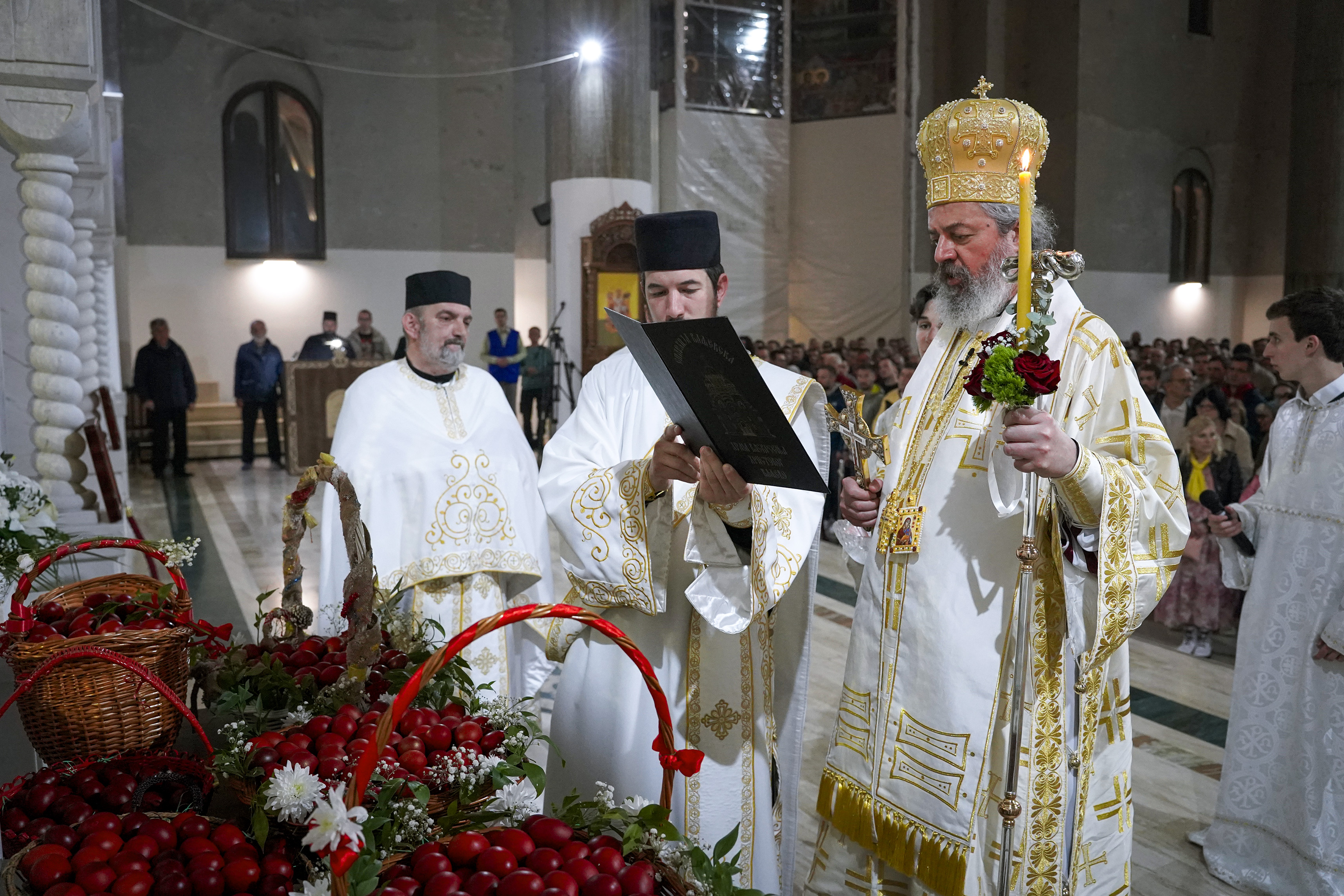 Саборни ваљевски храм, посвећен управо Празнику над празницима, и ове године био је молитвено одредиште неколико хиљада Ваљеваца на поноћној Светој Архијерејској Литургији, којом је началствовао духовни отац овдашњих верника Преосвећени Епископ ваљевски г. Исихије. Саслуживало је свештенство Храма Васкрсења Господњег, уз појање певнице и Црквеног хора “Емануил” под управом Вање Урошевић.