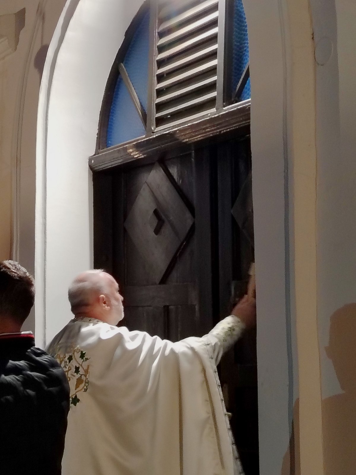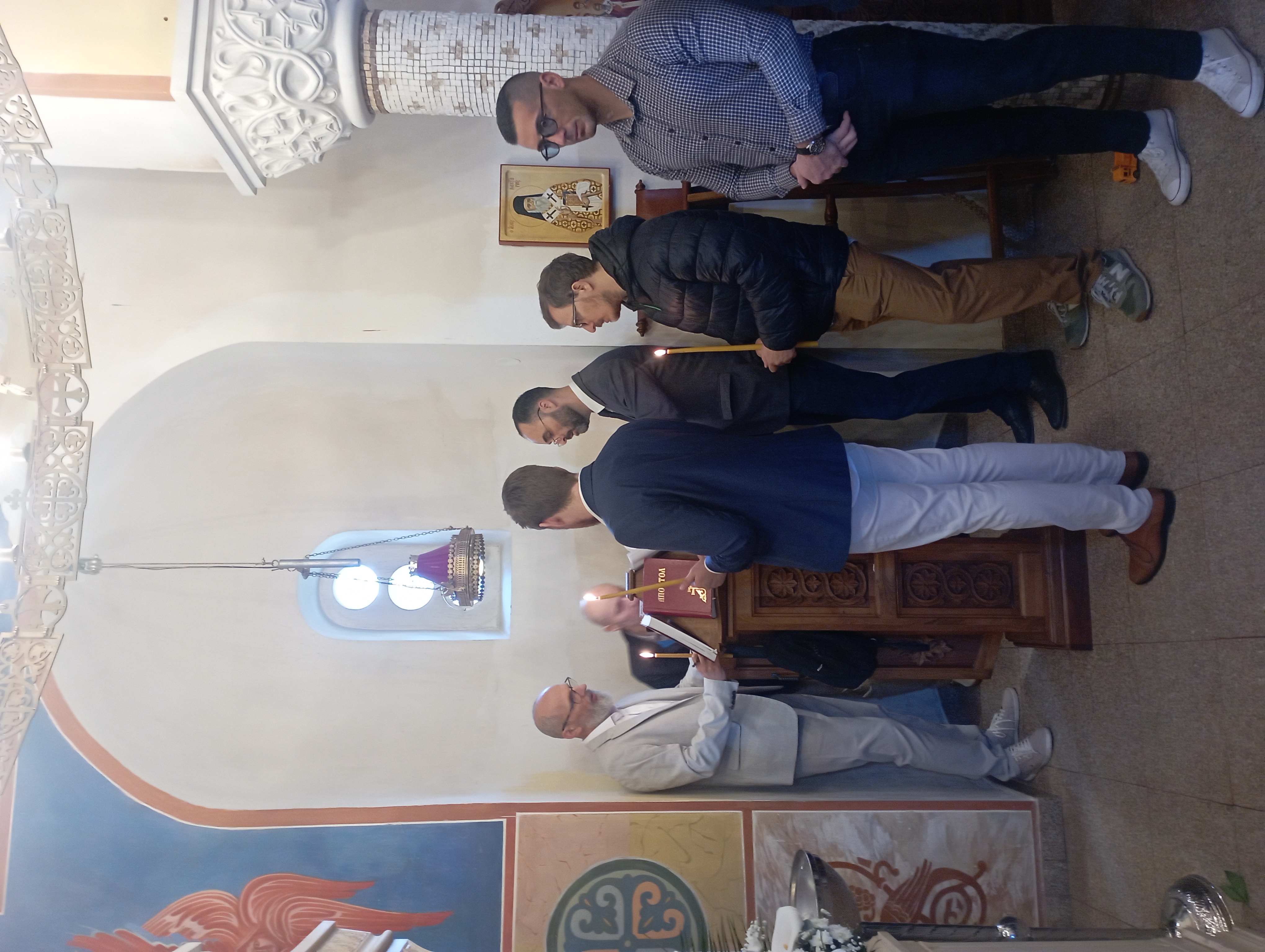 Храм Светих лекара Козме и Дамјана у кругу Здравственог центра Ваљево, као и увек, био је недовољно велики да прими све који су управо у њему желели да литургијски прославе Васкрсење Господа Христа, те је и малени плато испред светиње био пун верног народа. Свету Литургију је служио свештенослужитељ при болничком храму јереј Драган Станојевић, уз саслуживање ипођакона др Небојше Пакевића и појање певнице, предвођене Милошем Матићем.