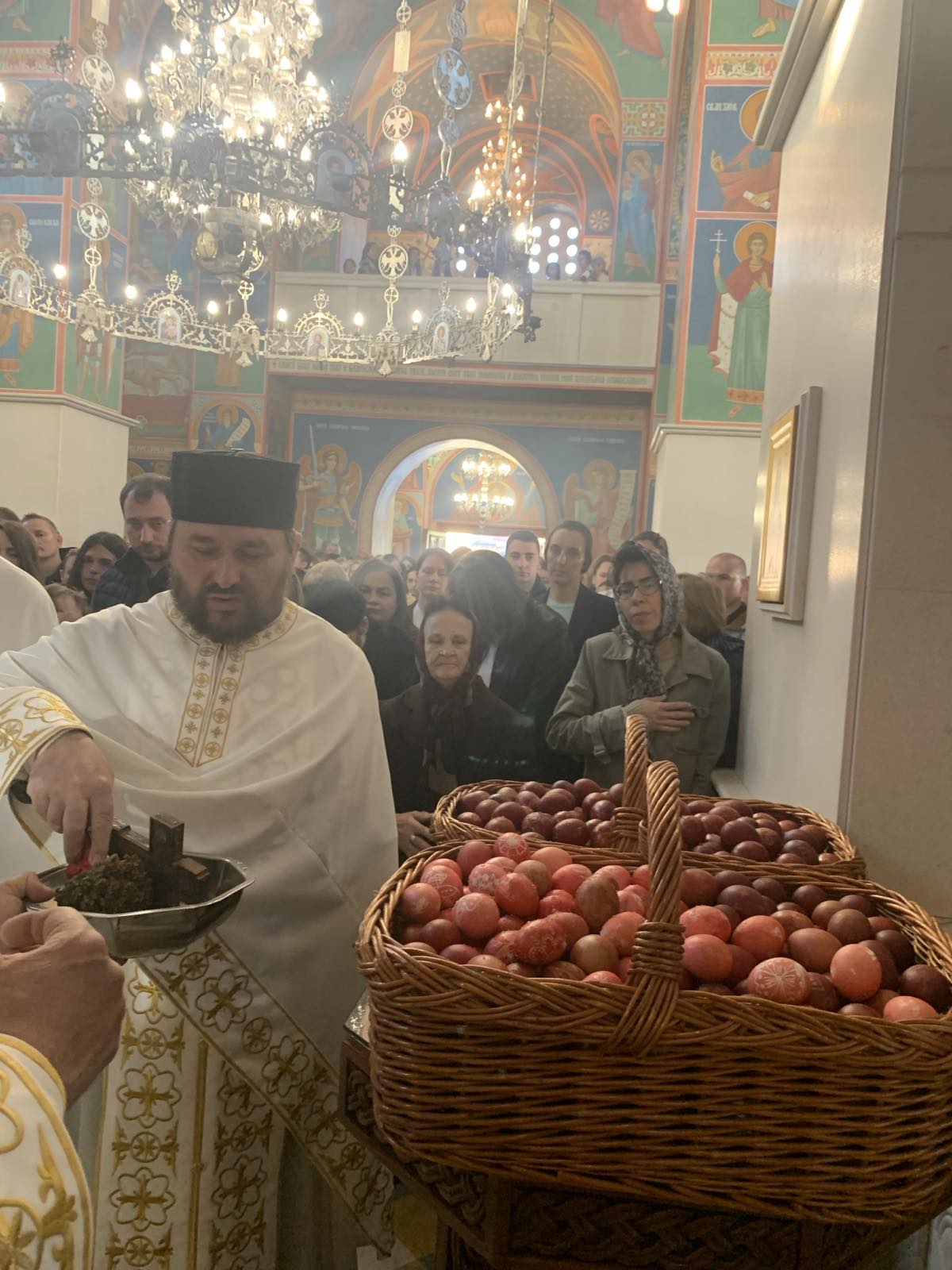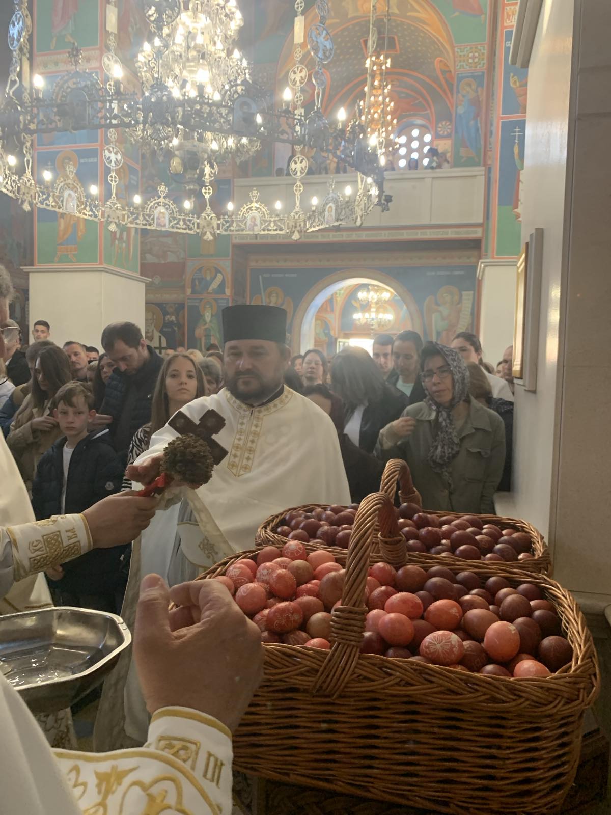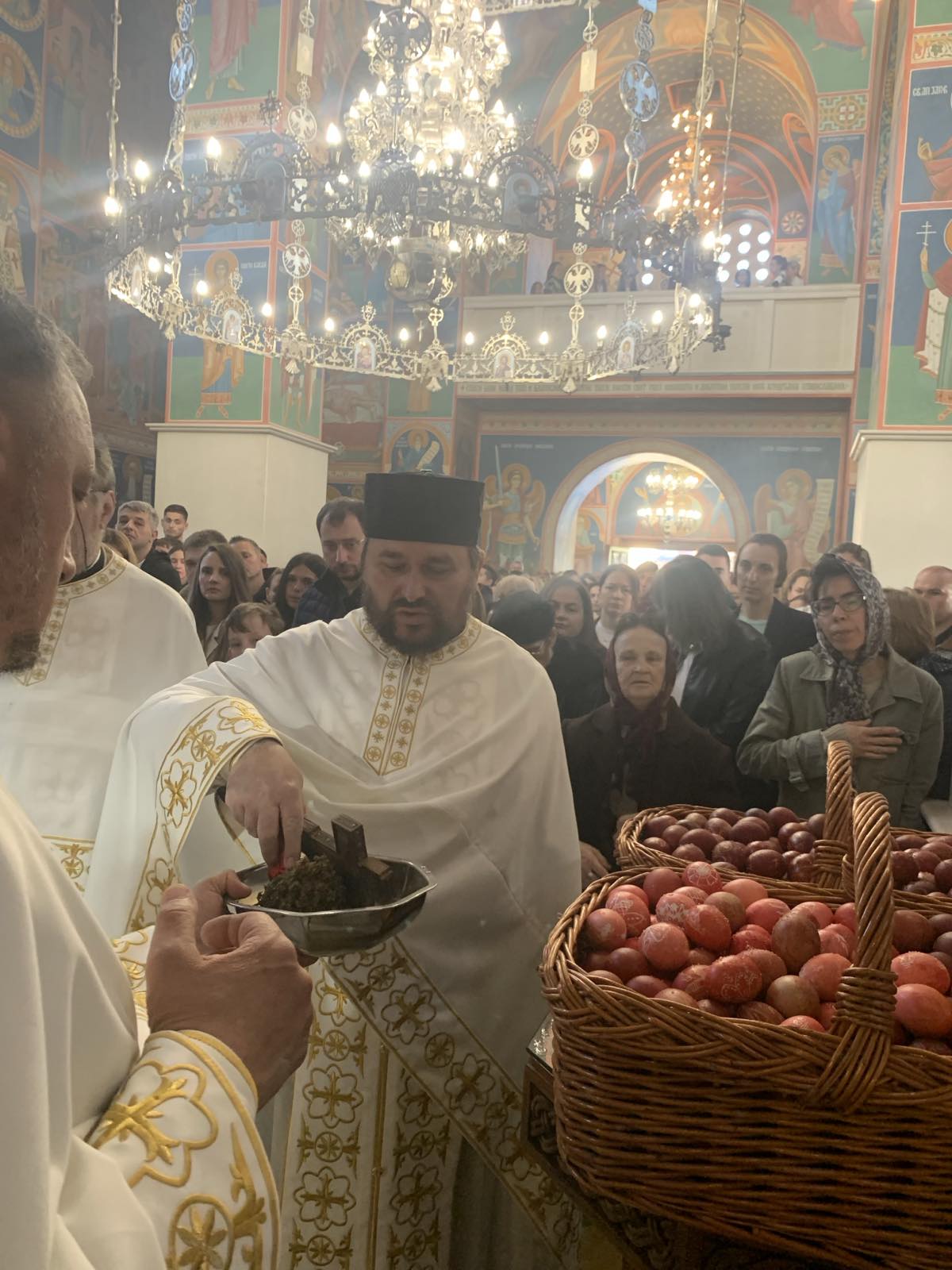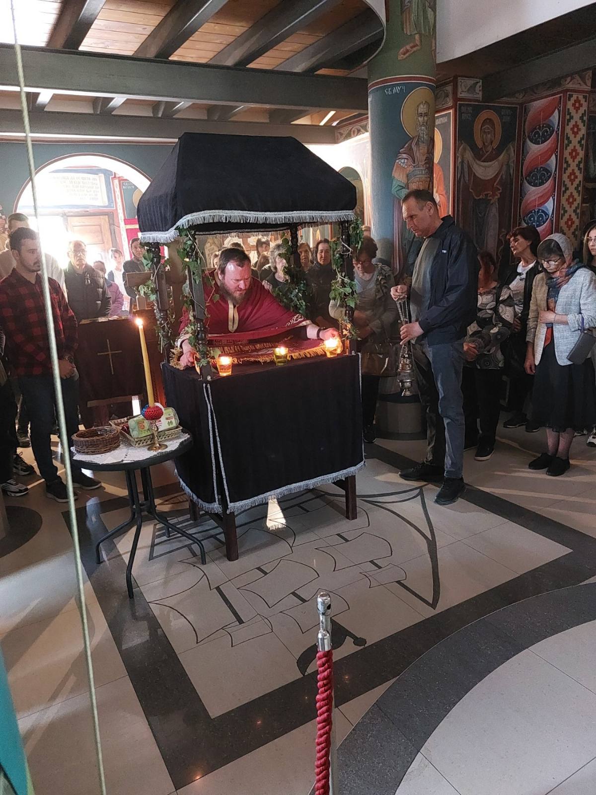 Посланицу Патријарха Порфирија и молитвеника српског народа пред Господом у матици и дијаспори је прочитао ипођакон др Небојша Пакевић. Бројни верници, међу којима понајвише деца, су приступили Светој тајни причешћа, након чега су освећена васкршња јаја, која су, уз Посланицу, на пригодним агапама подељена окупљенима.