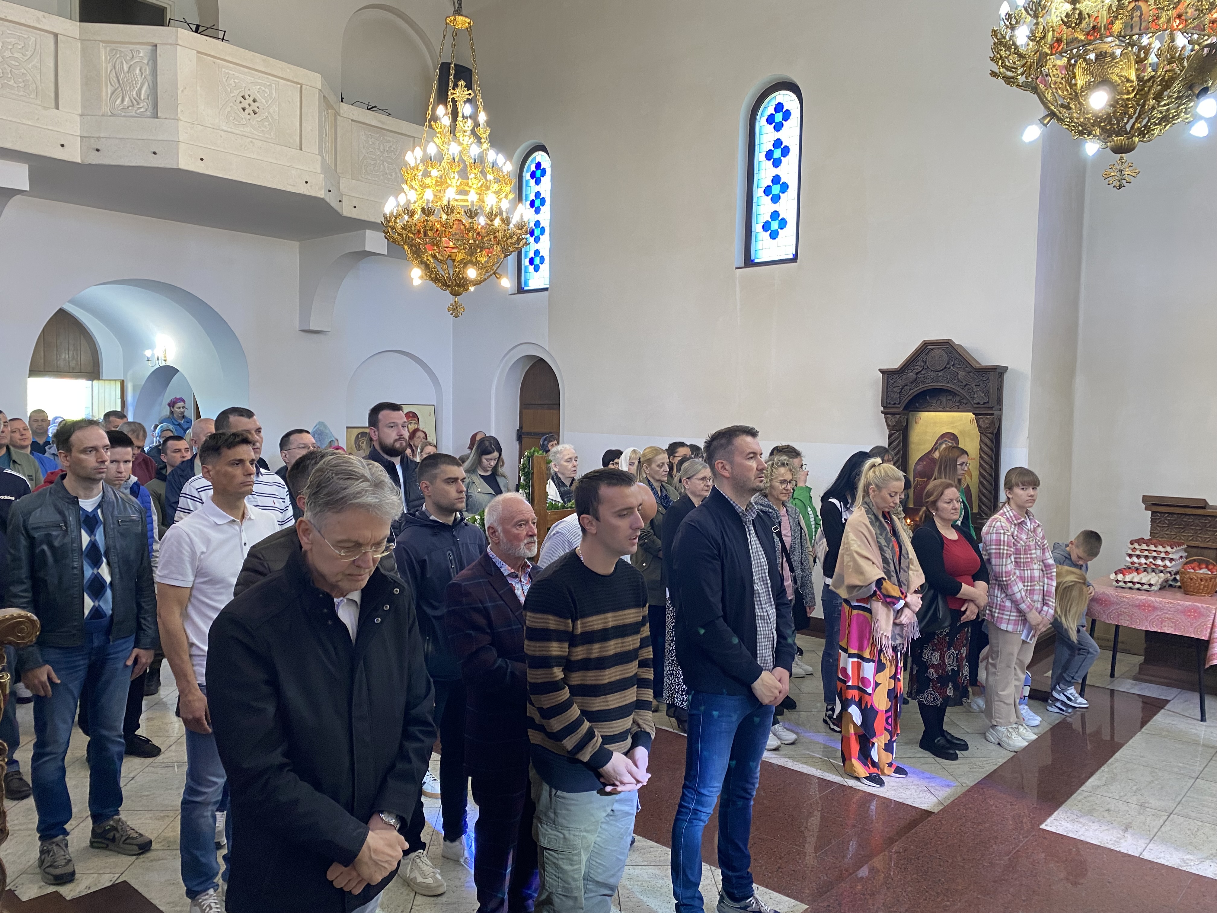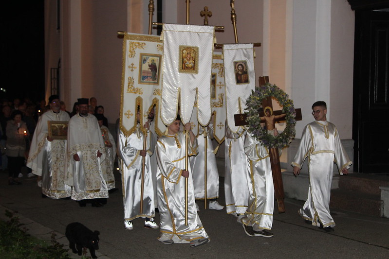 У недељу, радосним позивом звона, почело је свечано прослављање Васкрсења Господњег. Након трократних опхода око храмова, одслужена су Васкршња јутрења и Свете Литургије, на којима је прочитана Васкршња посланица Његове Светости Патријарха српског г. Порфирија. Највећи број верника се, након Свете тајне исповести, причестио Пречистим тајнама Христовим.