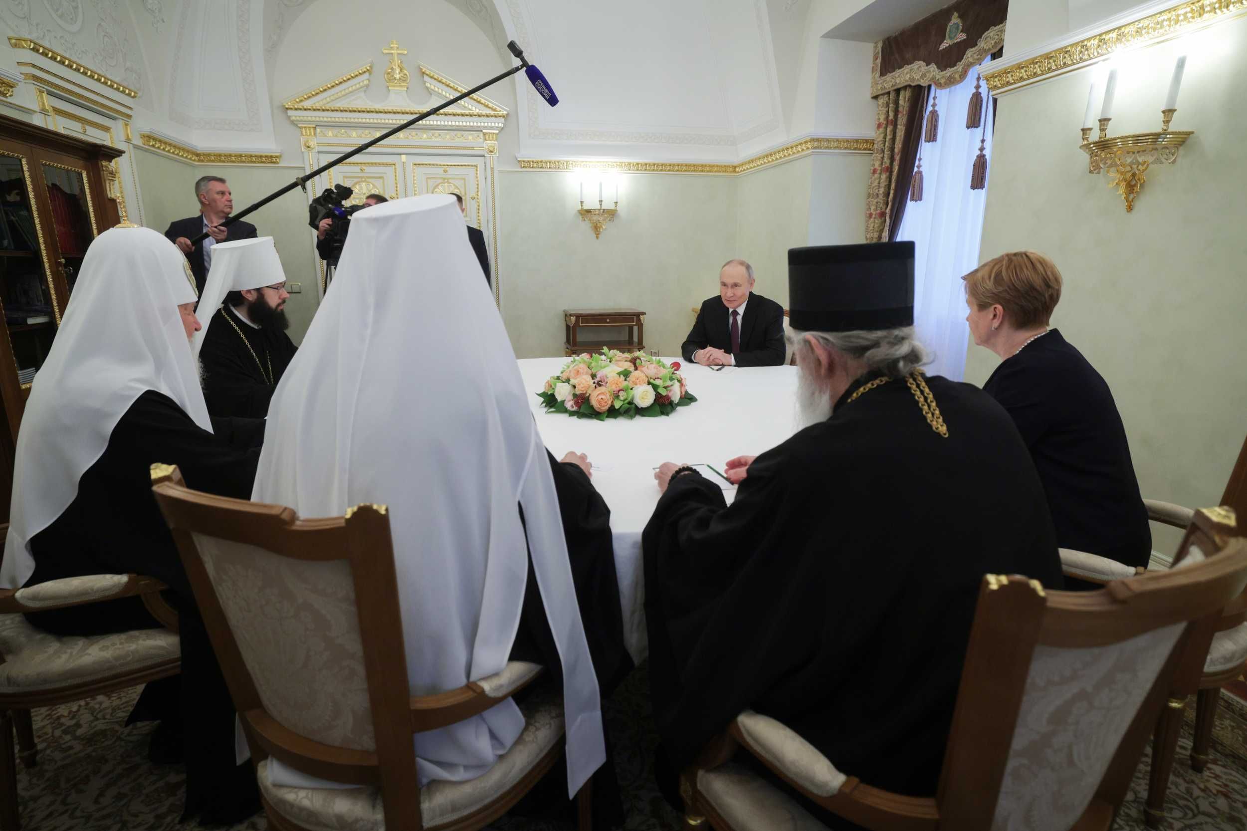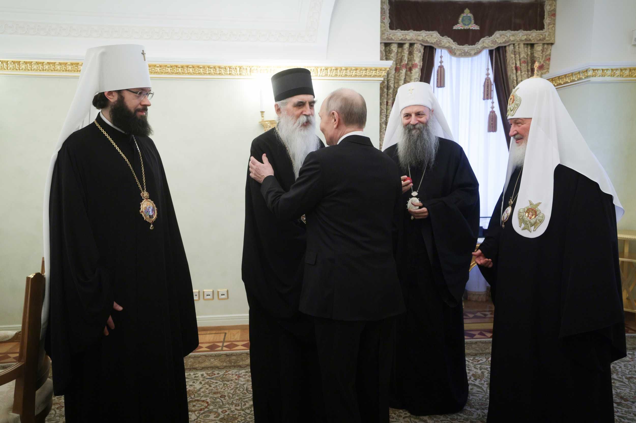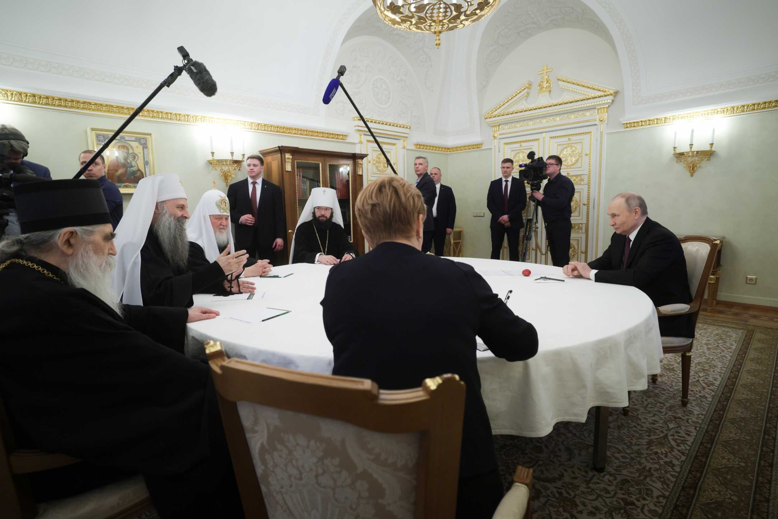 Како јављају руски медији, Његову Светост Патријарха српског г. Порфирија и Његову Светост Патријарха московског и све Русије г. Kирила примио је данас председник Руске Федерације г. Владимир Путин.