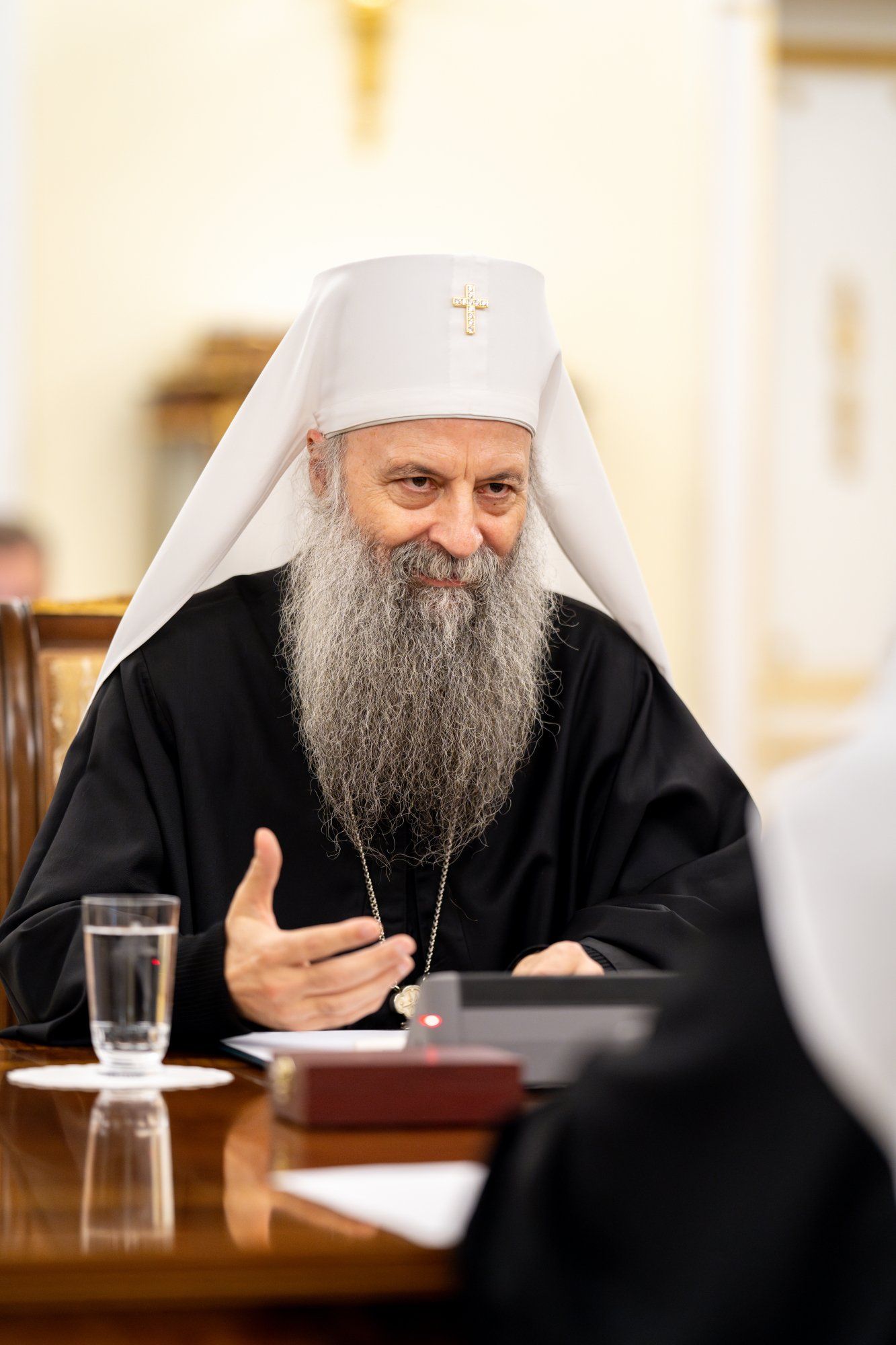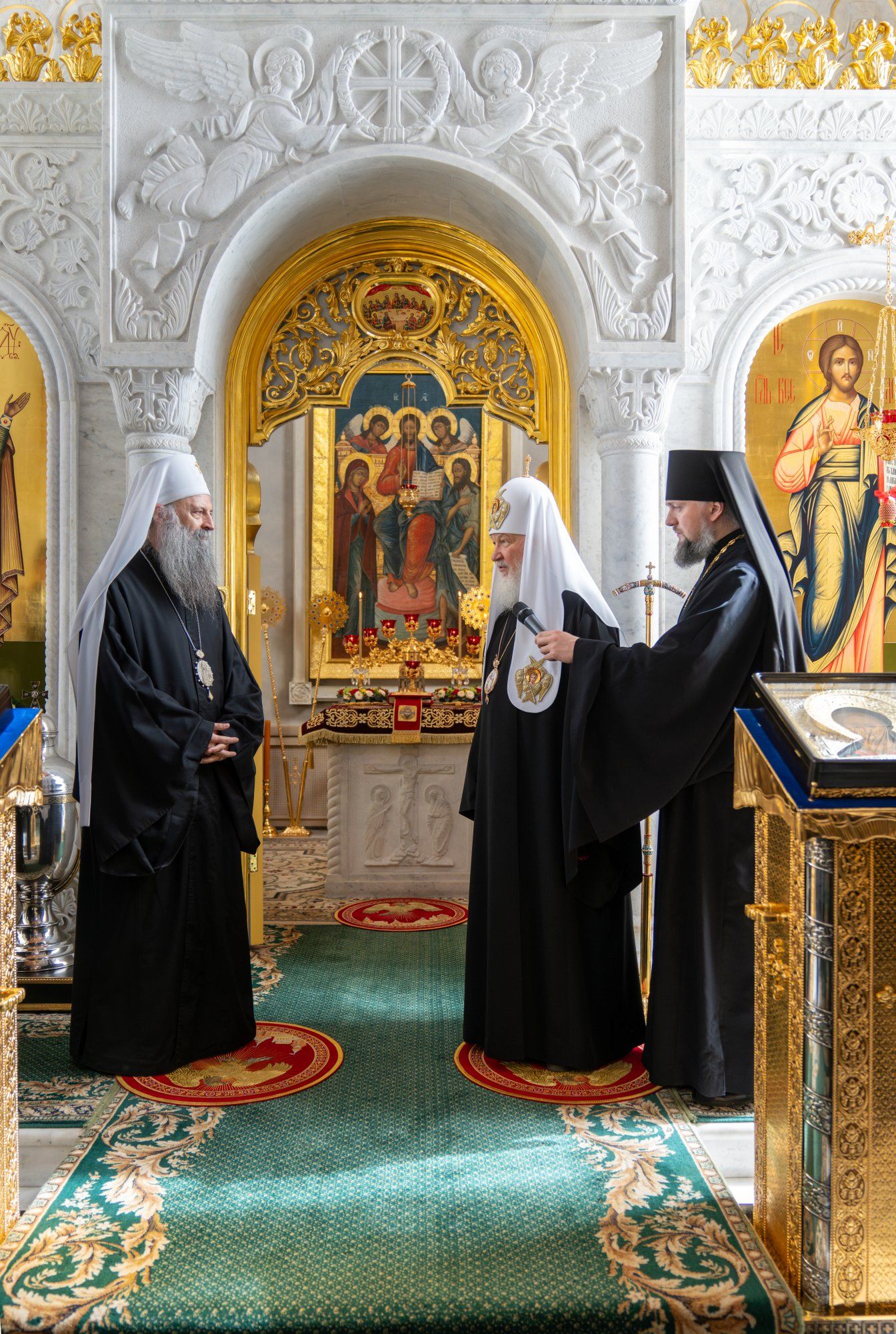 Његова Светост Патријарх српски г. Порфирије, који се са посланством Српске Православне Цркве налази у вишедневној посети Москви, разговарао је данас у Патријаршијској и Синодалној резиденцији у Даниловском манастиру са поглаваром Руске Православне Цркве, Светејшим Патријархом московским и све Русије г. Кирилом.