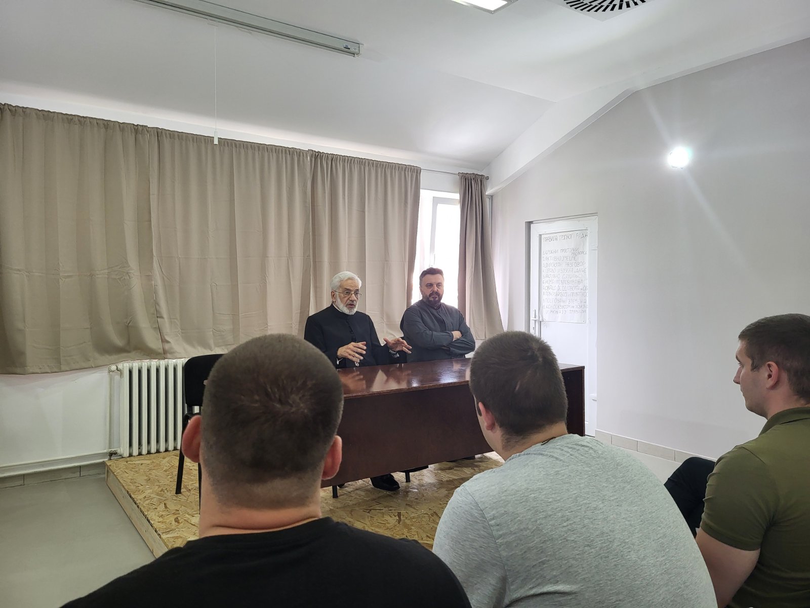 – Сећање помаже човеку да сакупи своје емотивне снаге, да се сабере, да прикупи своја и негативна и позитивна искуства. Претпостављам да овде сваког дана имате прилику да разговарате са психологом и да се некад пожалите, свакако да је кроз вашу свест пролазило оно што сте урадили и због чега сте овде. Сада, да може неко да врати “тебе” пре седам година, шта би рекао “оном теби”? Све и свашта, у смислу “што си то урадио…” То значи да је ово време на позитиван начин утицало да ти одређене ствари схватиш. Сви знате за народну изреку да “свако мора главом кроз зид”. Кад нећемо да се учимо на грешкама других, живот нас ставља у ситуацију да се учимо на сопственим- појаснио је прота Милош Весин дешавања на емотивном нивоу, разговарајући непосредно са штићеницима и дељењем њихових искустава.