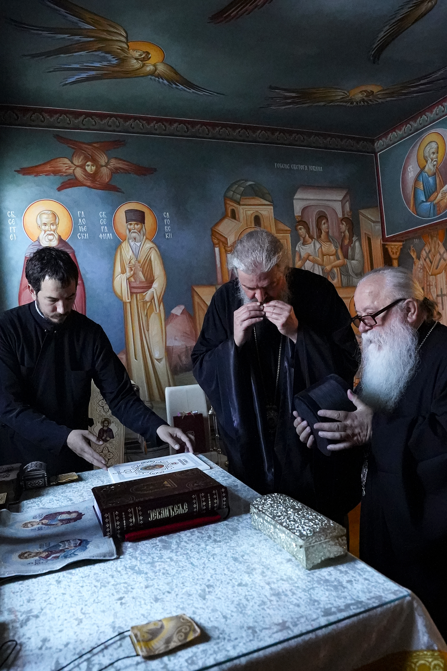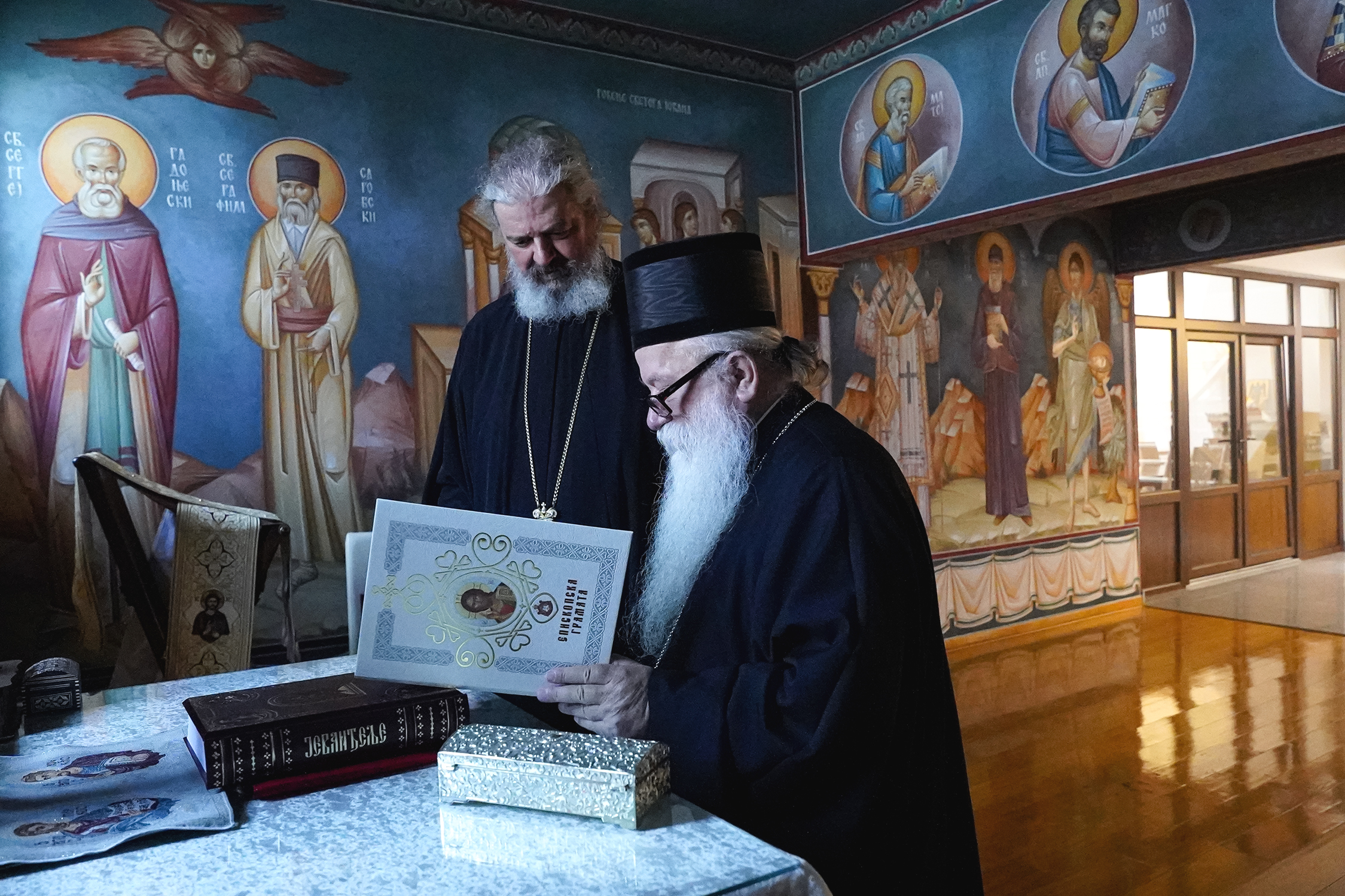 На празник Преподобног Исакија Далматског, Његово Преосвештенство Епископ ваљевски г. Исихије приредио је пријем за Митрополита дабробосанског г. Хризостома у Епархијском двору Епархије ваљевске. Сусрет је протекао у срдачном разговору браће архијереја и њихових сарадника. Посебно важан тренутак у данашњем дану било је уручивање делића моштију Преподобног Оца Јустина Митрополиту Хризостому, које је Владика Исихије даривао на молитвену радост и окрепљење његовим епархиотима. Отац Јустин веома је поштован међу прекодринском браћом и сестрама у Христу Господу и годинама му на поклоњење долазе у манастир Ћелије, те ће овај дар ваљевског архијереја за њих представљати велики благослов, будући да ће и на овај начин са њима молитвено пребивати. Митрополит Хризостом је усрдно заблагодарио и узвратио даровима са простора своје дијацезе.