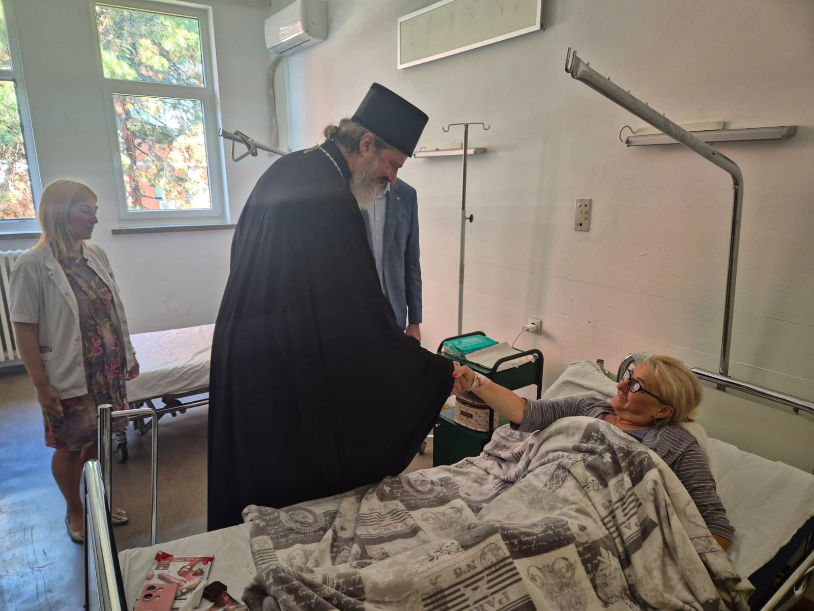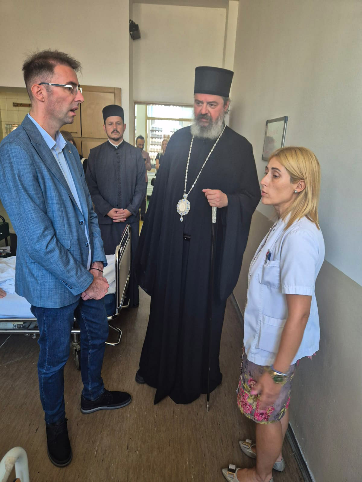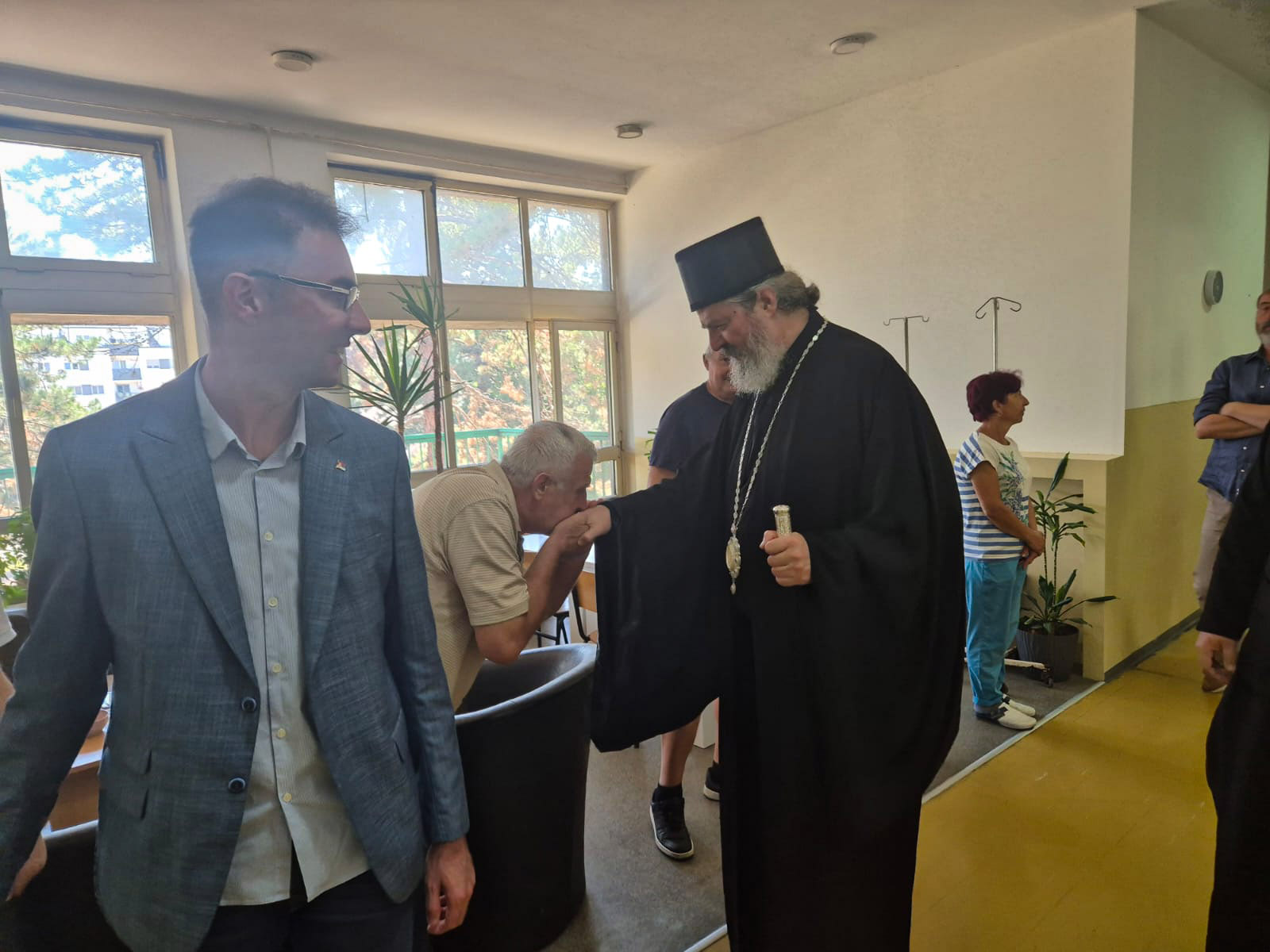 Након богослужења, Владика Исихије је са својим сарадницима, а у пратњи директора Здравственог центра, др Владимира Пантелића, и начелнице Одељења онкологије, др Тијане Томић- Лукић, обишао пацијенте који се налазе на лечењу на овом одељењу, затим на одељењу палијативне неге и у Центру за физикалну медицину и рехабилитацију. Упутивши им пастирски благослов, Владика Исихије је поразговарао са њима и пожелео сваког добра од Господа.
