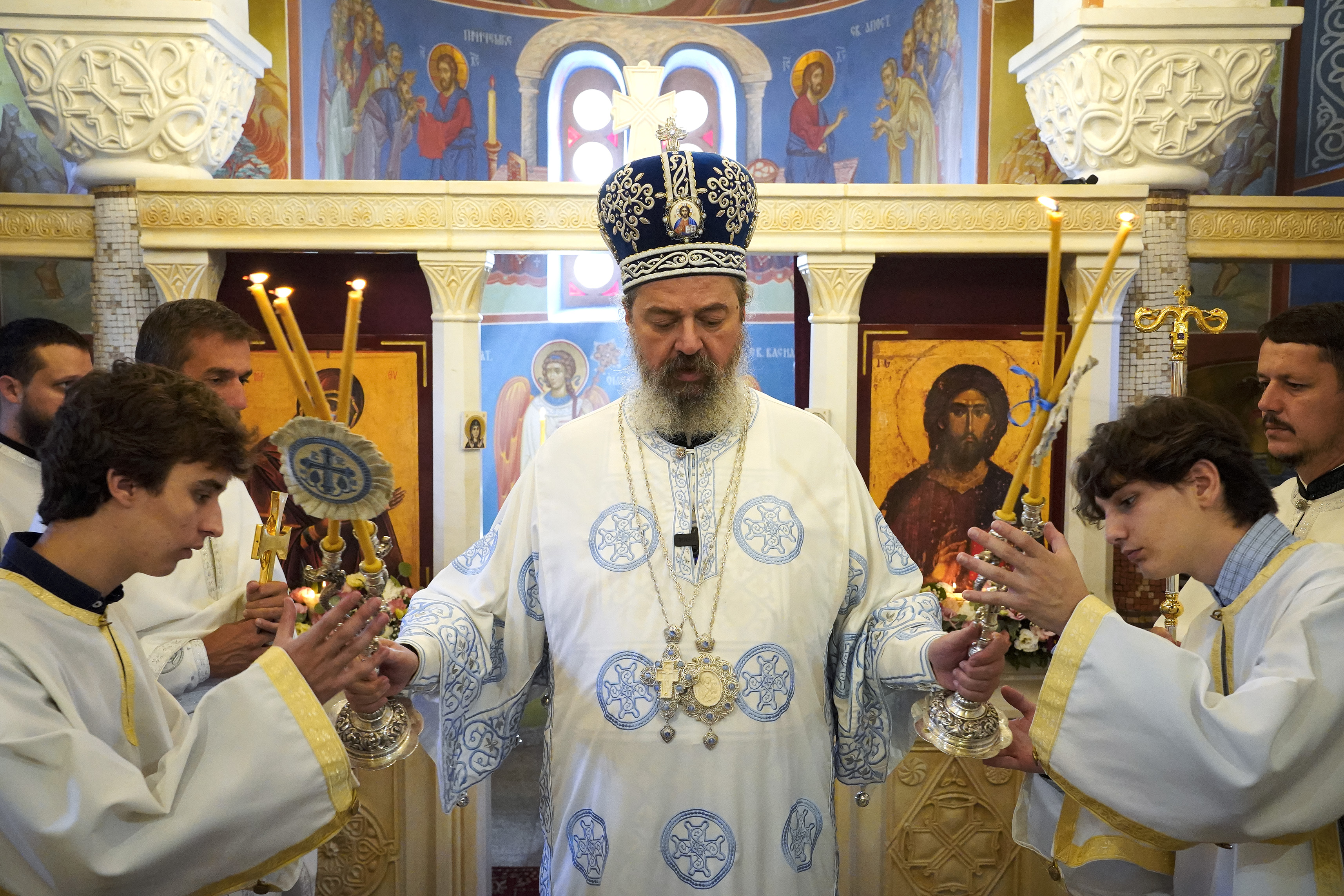 -Ту је једна дубока поука за све нас кад се суочимо са великом невољом, која изгледа потпуно нерешиво, да се пре свега помолимо Богу и онда слушамо Његов одговор. Ако је он ван нашег расуђивања, да то прихватимо. Имамо јеванђеље, имамо Свете Оце, Цркву која нам говори реч Божју и, прихвативши ту реч, иако је често парадоксална, приступамо решавању искушења, непремостивог проблема који нас притиска и онеспособљава. Онда Господ кроз то наше дело чини чудо. Али, чудо је само средство Божје, јер није Он дошао да нахрани народ у пустињи, да нам да “обични хлеб”, већ да нам да хлеб небески, а то је Он Сам. Тај хлеб- Његово тело и крв примамо на Светој Литургији, када се причешћујемо- поучио је Владика Исихије о заједници са Господом у Духу Светом у Царству Божјем ка коме су чудеса путокази. Исцељења и сва добра која је чинио нам показују да ћемо се исцелити и постати целовити у заједништву са Њим већ овде на земљи, а ако се потрудимо, онда и у вечности, истакао је Владика Исихије, благосиљајући сабране у Храму Светих лекара Козме и Дамјана.
