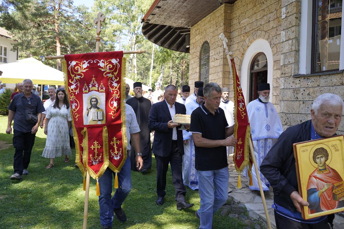 По Светој Литургији, начињен је литијски опход и преломљен славски колач. Честитајући славу дивчибарском пароху, јереју Стевану Сировљевићу, свечарима, парохијанима и свима које је прослава Светог Пантелејмона довела у ваљевску ваздушну бању, Владика Исихије је навео да храм краси планински врх и призива божанску благодат на овај крај и сабира све оне који следе Господу.